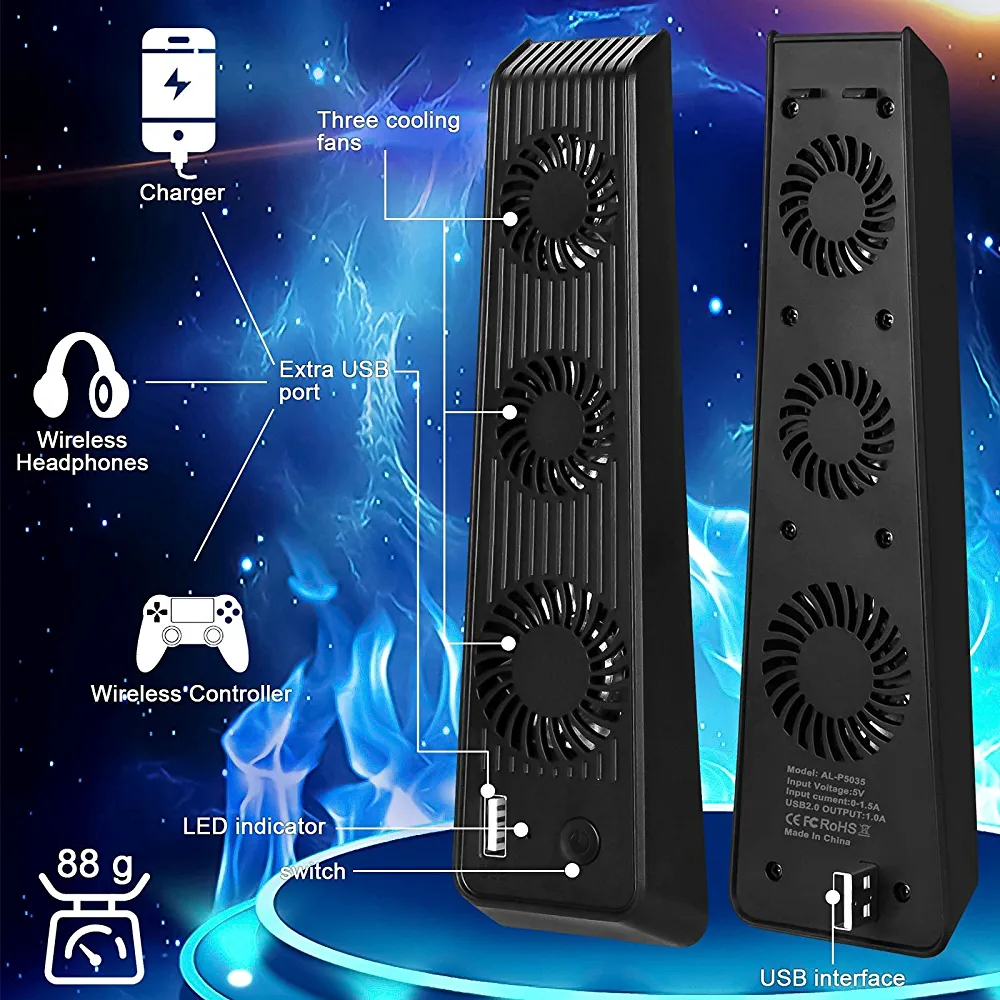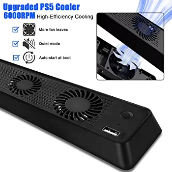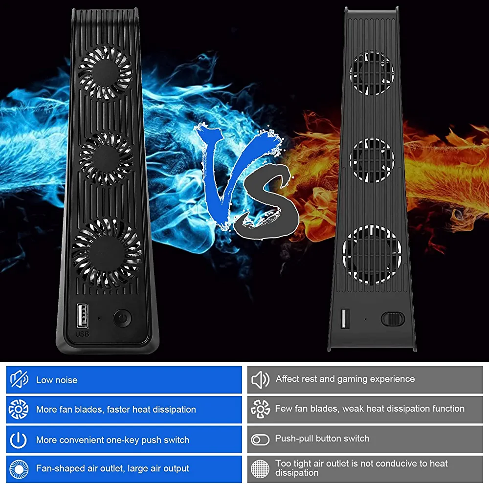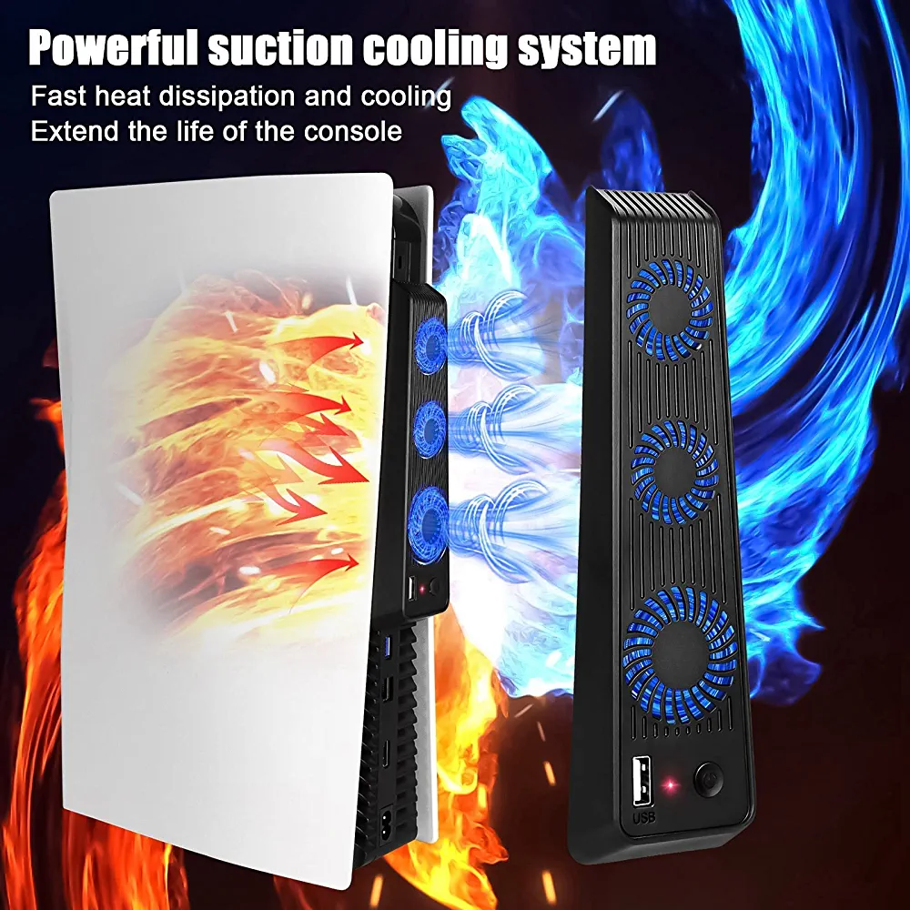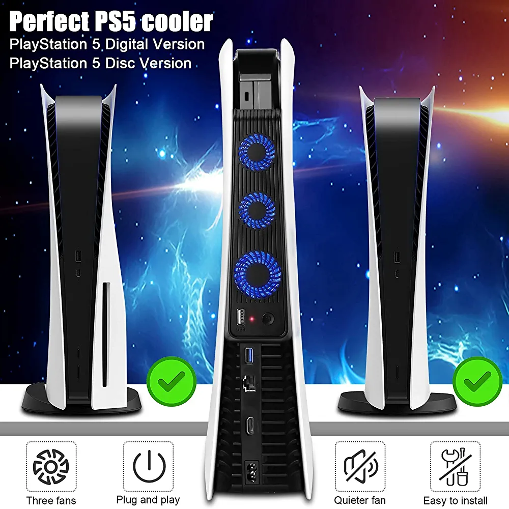 PS5 Console Cooling Fan with 3 Fans and USB Ports – Upgrade Your Gaming Experience with Quiet Self-Starting Cooling Fan.