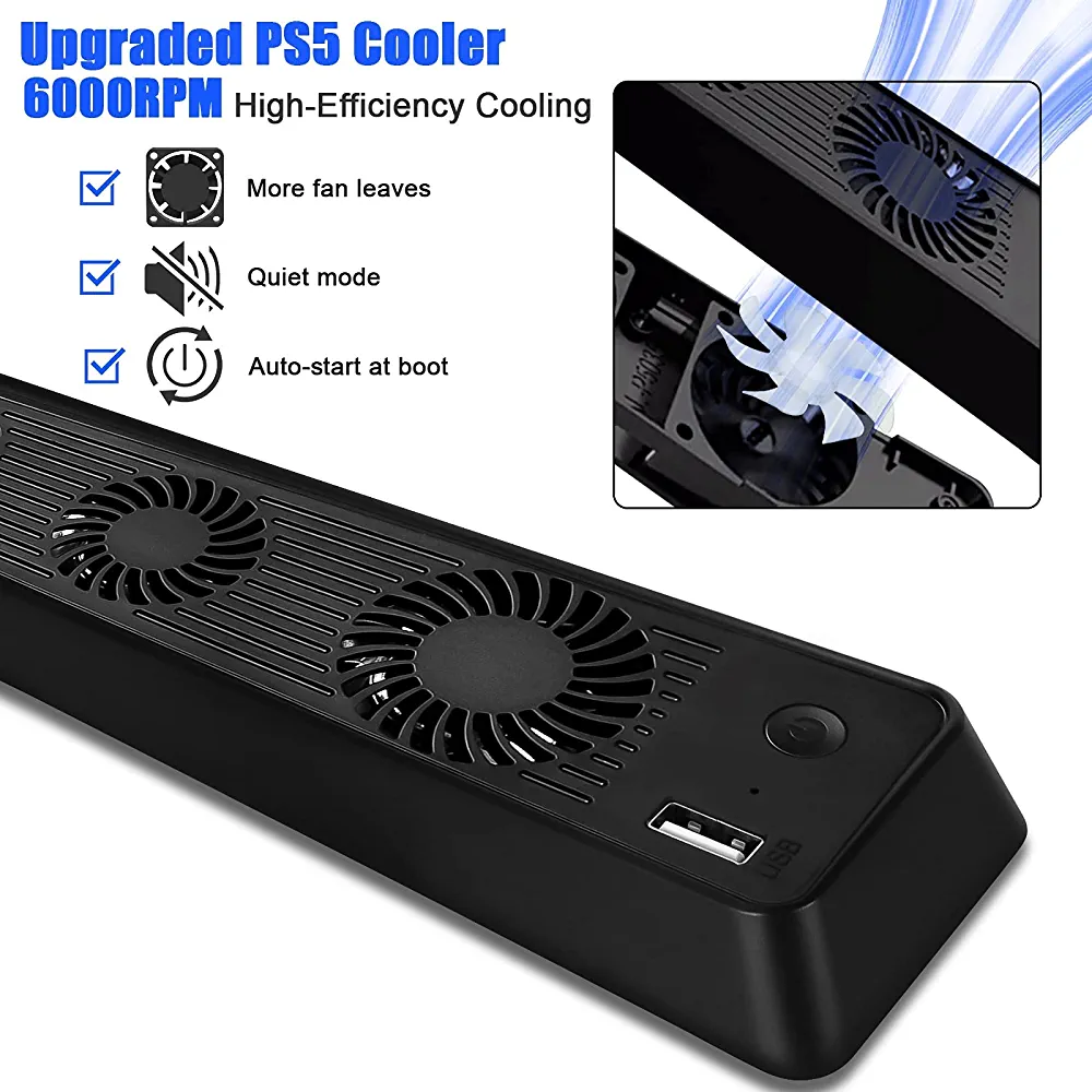 For PS5 Cooling Fan, for PS5 Console with 3 Fans, USB Ports, Upgrade Quiet Self-Starting Cooling Fan for PS5 Console Accessorie