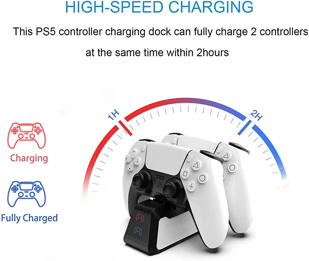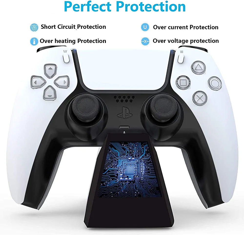 For PS5 gamers, the Charger For PS5 Controller is an ideal option. This charging station is of top-notch quality and can charge two PS5 controllers at the same time in just two hours. This means that you can keep your controller charged and ready for an intense gaming session. The charger has a sleek and modern design, making it an excellent choice for PS5 gamers. Additionally, it has advanced safety features that protect your controllers from overcharging or overheating. The package includes a controller cover and a USB Type-C Cable.