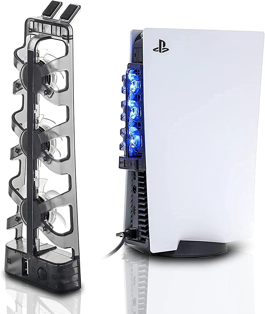 PS5 Accessories Cooling Fan Playstation 5 Cooling System with LED Light for Both Disc and Digital Editions, Efficient Cooling System, Horizontal Compatible Stand