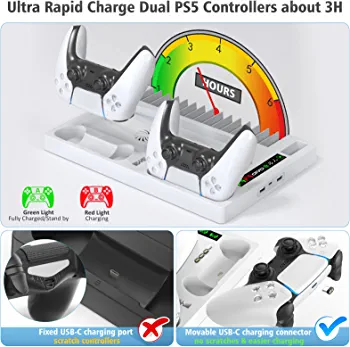 Say goodbye to cluttered wires and overheating consoles, and hello to the ultimate gaming experience with the PS5 Cooling Stand with Controller Charger.