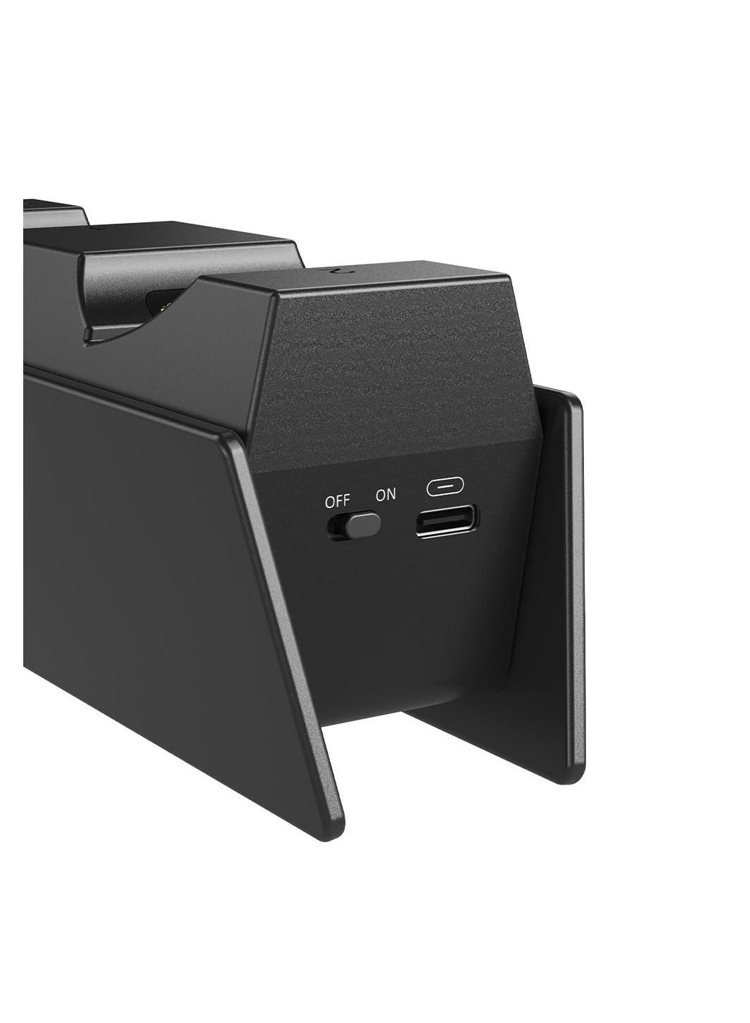 This charging dock is specifically designed for PS5 controllers and can charge two at once. It comes with two types of cables and can be powered by the PS5 console, eliminating the need for a separate power adapter. The built-in Quick & Safe smart chip increases voltage, allowing for a fast charge time of just two hours. LED indicators show the charging status and an On/Off switch near the input port allows for energy-saving standby mode. The dock is easy to use, simply connect it to the PS5 console and place the controllers on the cradle. It’s a great accessory for gamers with multiple controllers.