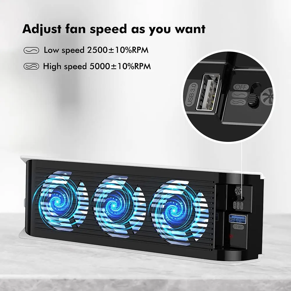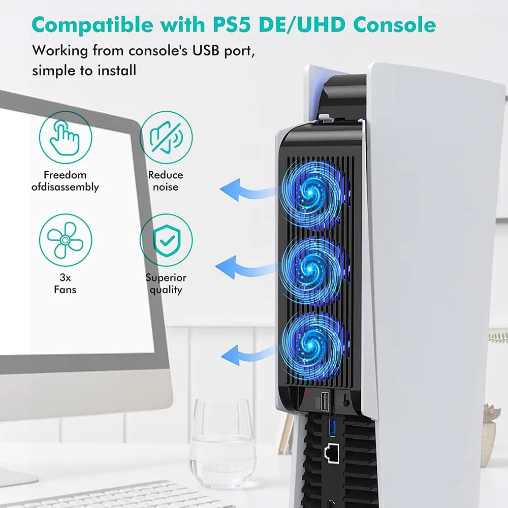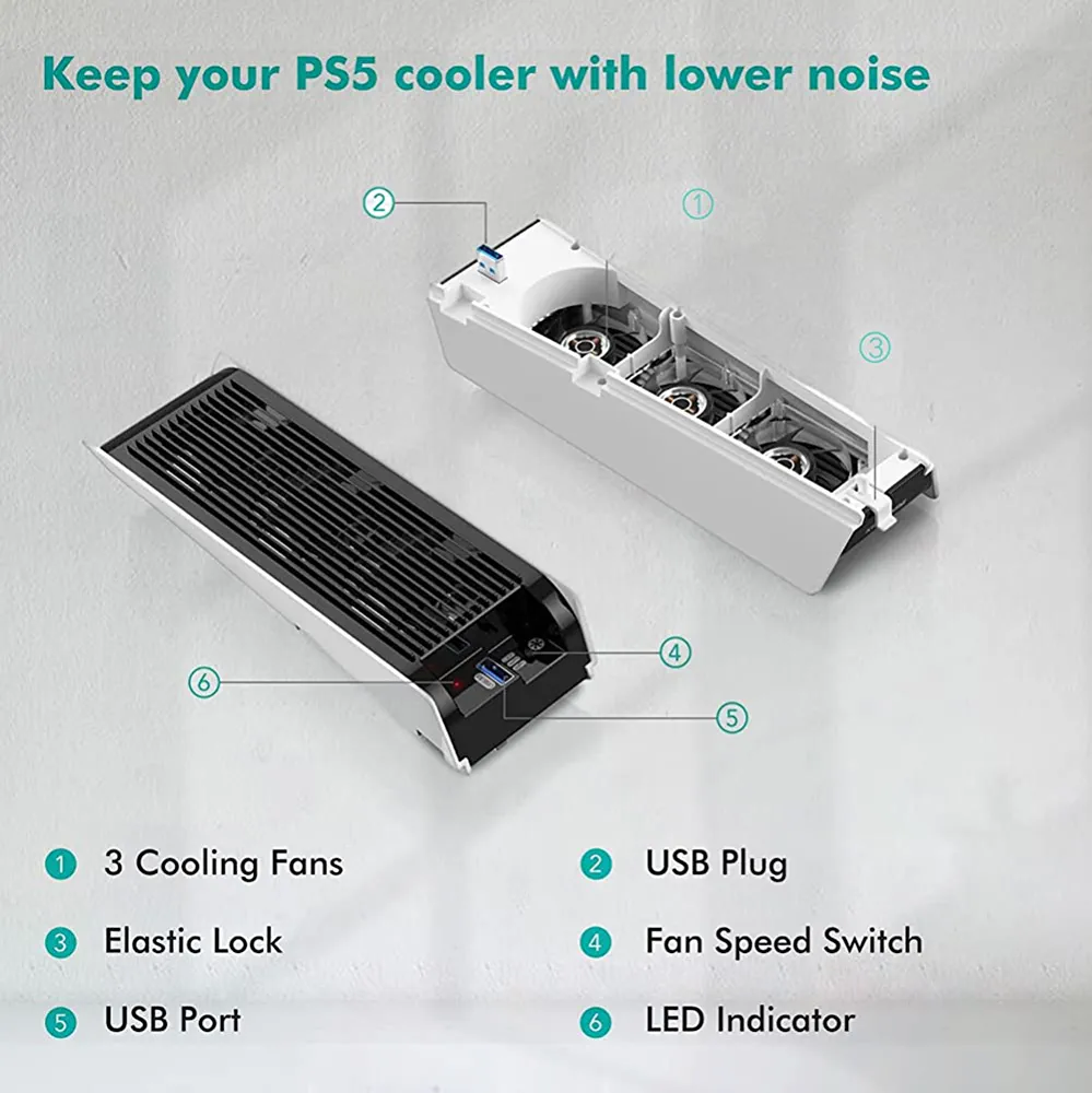 | nameOriginal | PS5 Fan Cooling Fan, PS5 Cooling Fan with LED Light, Upgraded Quiet Cooler Fan with 3 Fans & Controller USB Port for Playstation 5 PS5 Digital Edition/Ultra HD Console(White) |