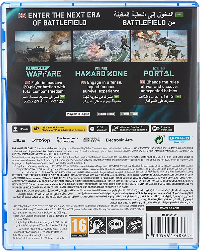 | descriptionOriginal | Description Battlefield 2042 is a first-person shooter that marks the return to the iconic all-out warfare of the franchise. Adapt and overcome in a near-future world transformed by disorder. Squad up and bring a cutting-edge arsenal into dynamically-changing battlegrounds supporting 128 players*, unprecedented scale, and epic destruction. |