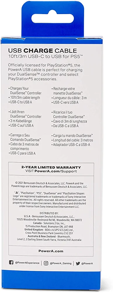 Play Your Way with the PowerA USB Charging Cable for PlayStation 5. This 10ft cable is perfect for charging your DualSense controller while your console is on standby or during gameplay. The cable is made with ferrite coil and gold plated connectors for durability.