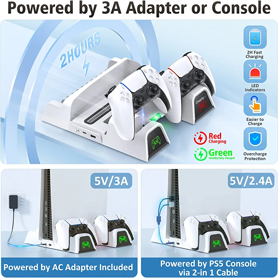 OIVO PS5 Stand Suction Cooling Station with AC Adapter,PS5 Controller Charging Station for Playstation 5 Console, PS5 Cooling Fan Stand, PS5 Controller Charger Accessories, 12 Slots, Headset Holder