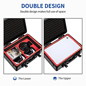 This PS5 travel storage case is the ultimate solution for safeguarding your console and accessories while on the go. It boasts a waterproof and shock-absorbing design, along with a customized foam interior that perfectly fits your PS5, charging base, two controllers, CDs, and data cables. The hard shell exterior is both shockproof and crushproof, providing unparalleled impact-resistance for your console and accessories. Made from durable ABS and EVA materials, this case measures 17.8*13.4*8 inches and weighs 4.5kg. It comes with a packing list that includes one PS5 storage case. Don’t take any chances with your valuable gaming equipment – invest in a case that’s specifically designed to protect it.