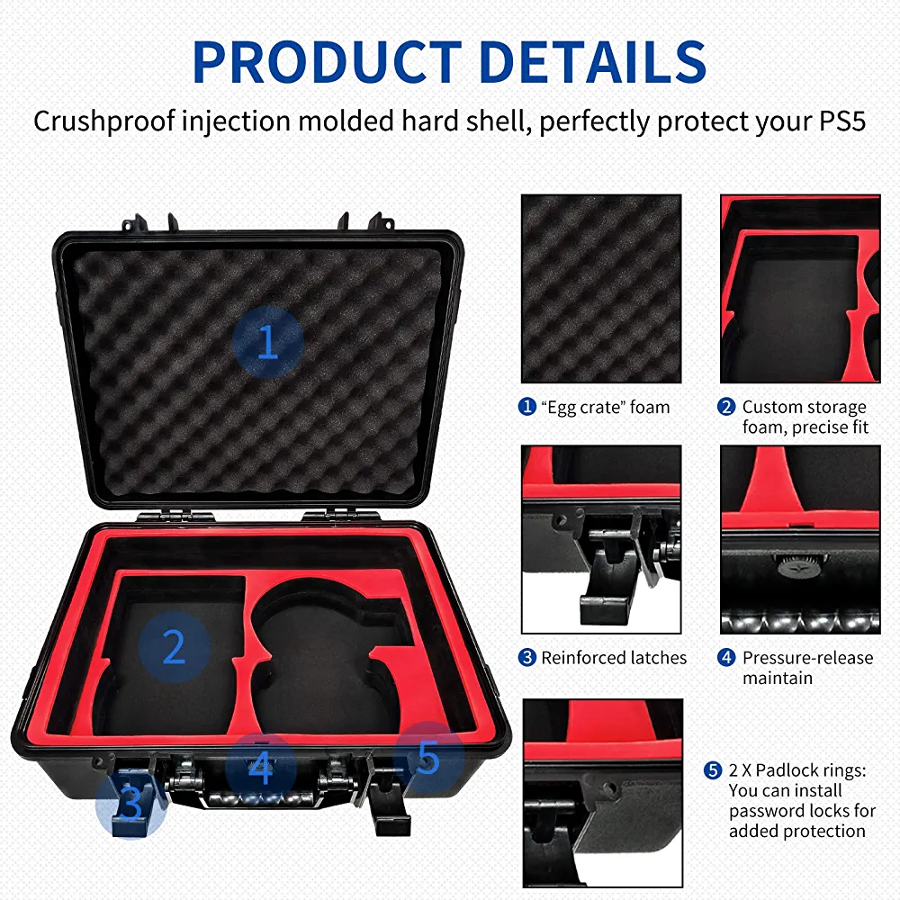 | nameOriginal | Travel Storage Case for PS5, Hard Shell Case for Playstation 5, Shockproof Waterproof Crushproof Hard Carrying Case Bag with Customized Foam Interior |