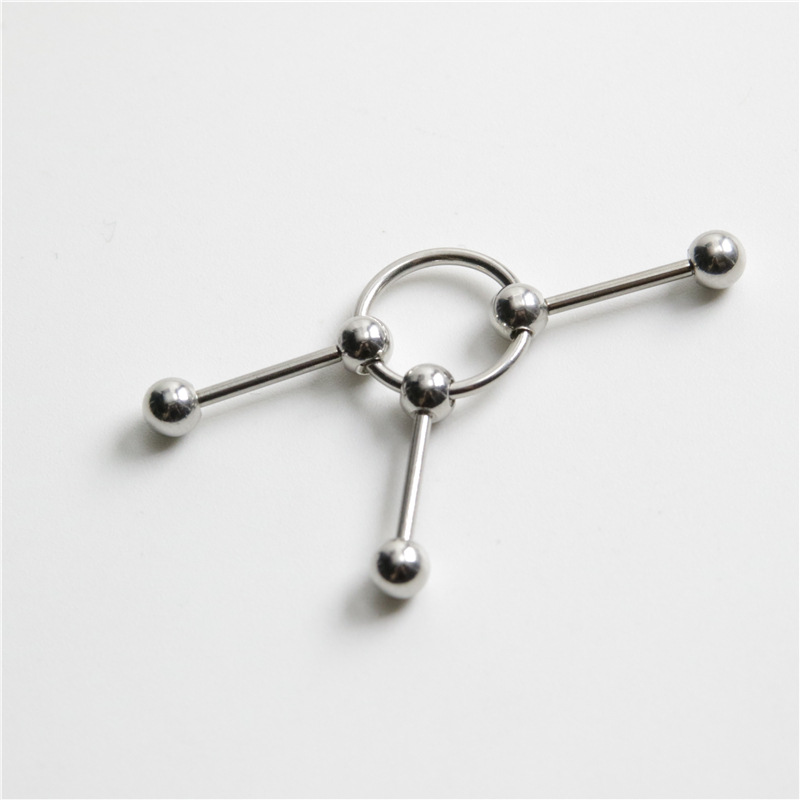 PS705 personality European and American titanium steel special-shaped industrial wind ear Bridge ear bone nail round barbell body piercing jewelry