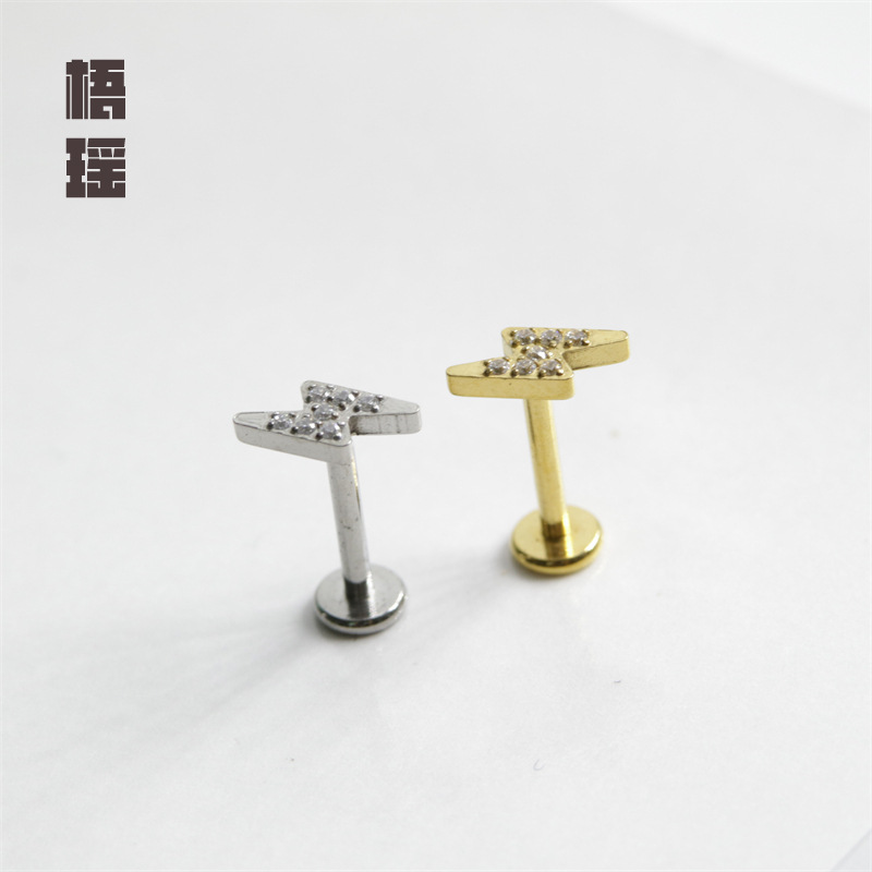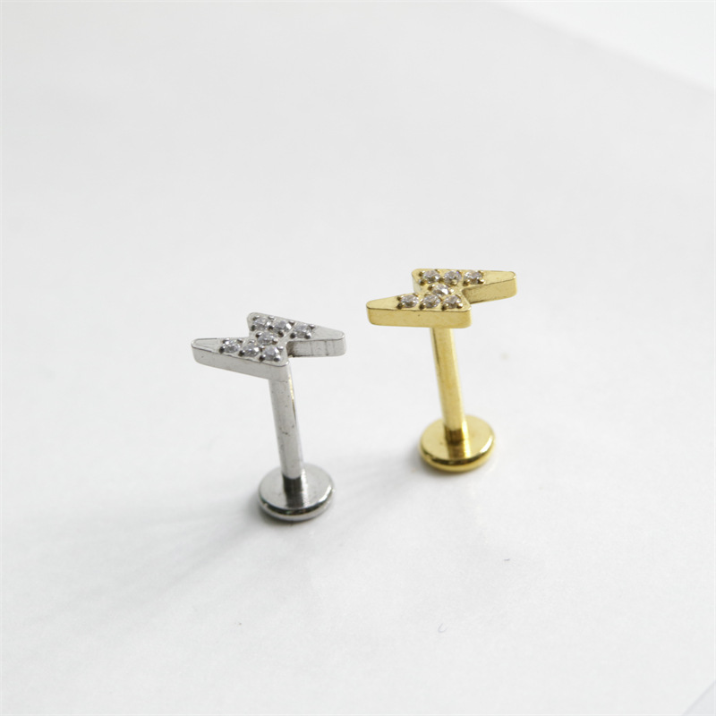| nameOriginal | PS972 1.2*8mm pin titanium steel zircon lightning shape lip nail ear bone nail puncture jewelry cross-border |