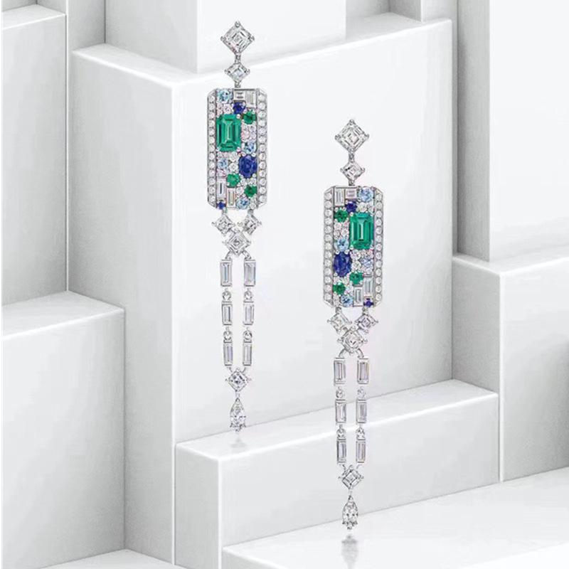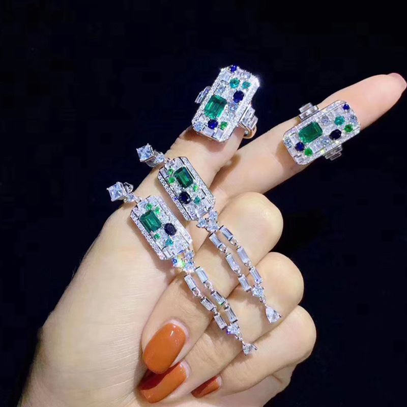 | nameOriginal | pt950 Emerald Imitation Earrings ArtDeco Edwardian Women's 2021 New Fashionable Fragrance Autumn and Winter Stud Earrings |
