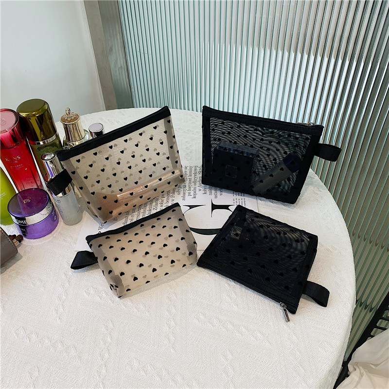 | nameOriginal | PU Cosmetic Bag Women's New Niche Mesh Breathable Large Capacity Storage Bag Ultra Light Portable Travel Love Wash Bag |