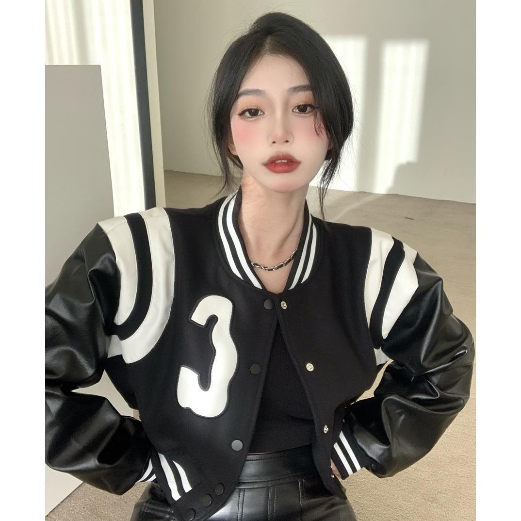 | nameOriginal | PU Leather Coat Baseball Suit Short Coat Women's Spring and Autumn New American Style Jacket Instagram Style Long Sleeve Student Top Trendy |