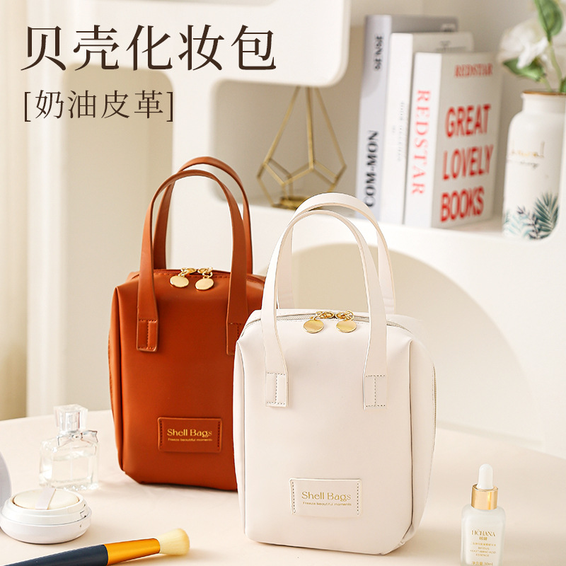 | nameOriginal | PU leather double portable large capacity makeup storage bag simple high-grade solid color portable storage travel wash bag |