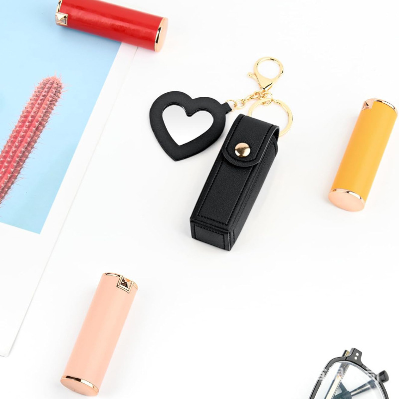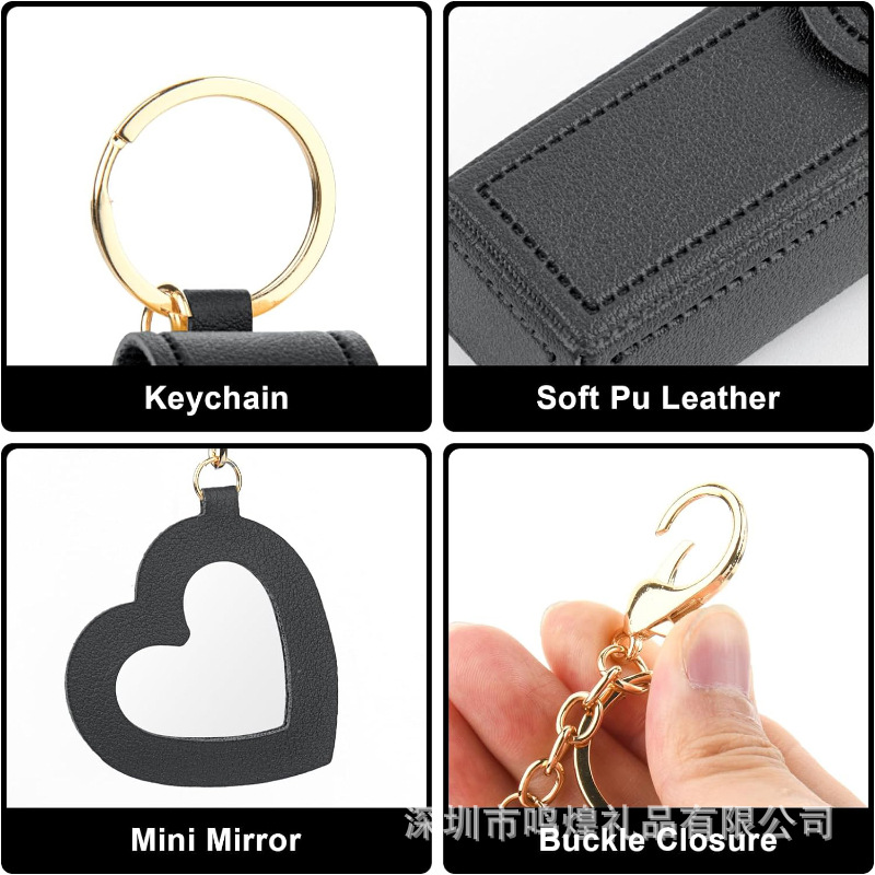 | nameOriginal | PU leather macaron lip balm set keychain small mirror lipstick bag company exhibition gift |