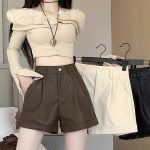 | nameOriginal | PU leather shorts women's spring/autumn/winter cross-border new American high waist slimming outer wear loose wide leg casual bottoming boot pants |