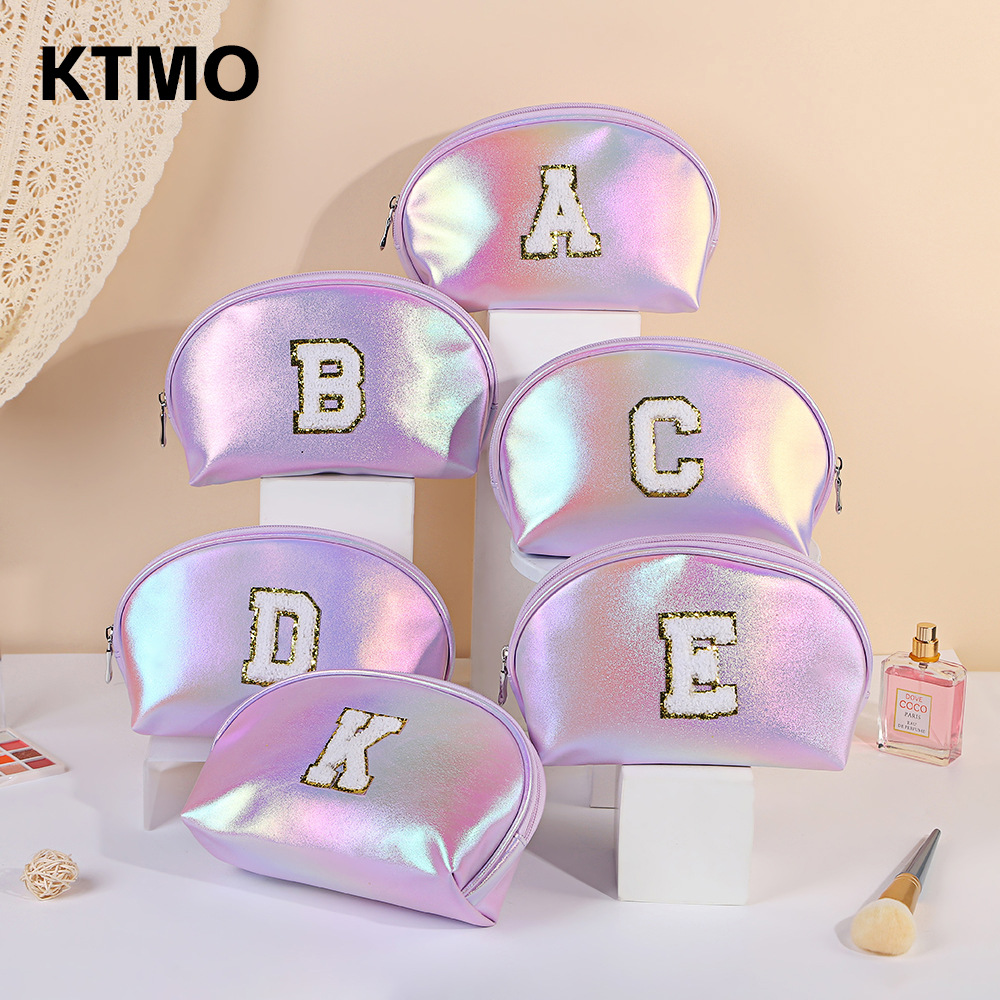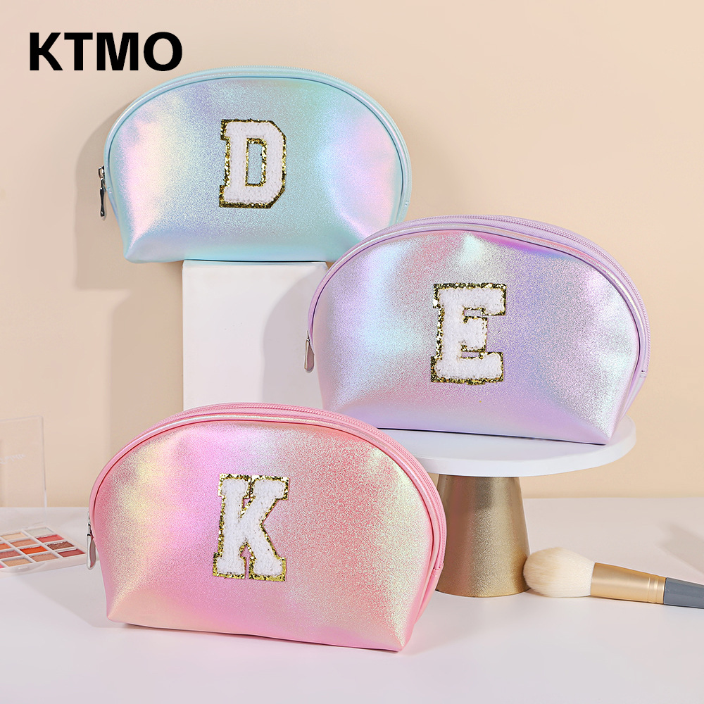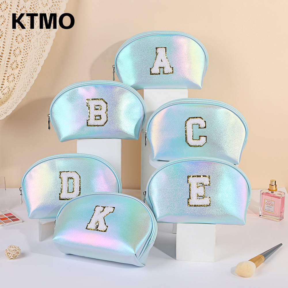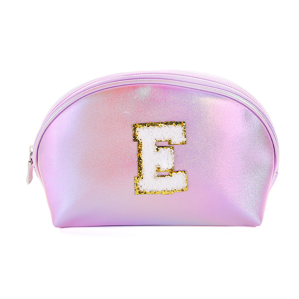 PU Magic Color Laser Cosmetic Bag Ins Style Single Letter Embroidered Semicircle Toiletry Bag Travel Storage Bag Clutch Bag