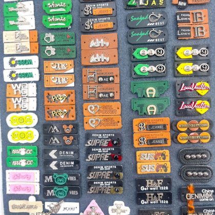PU small leather label embossed printing trademark clothing bags shoes and hats leather brand artificial leather labeling hardware small leather label