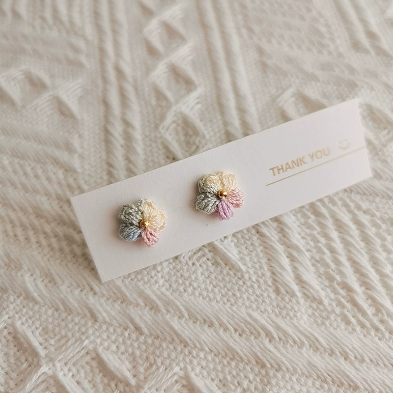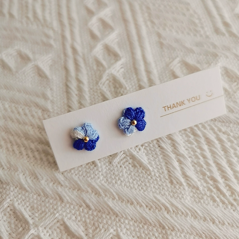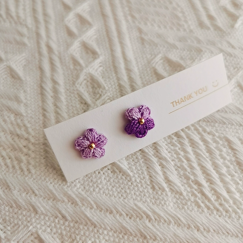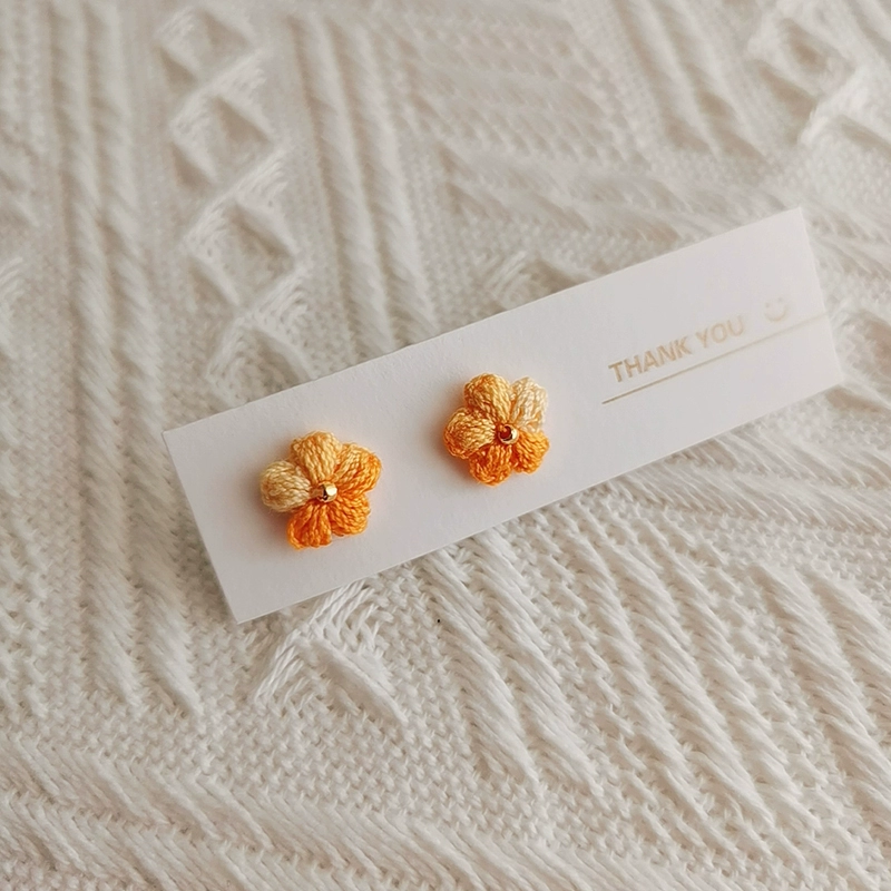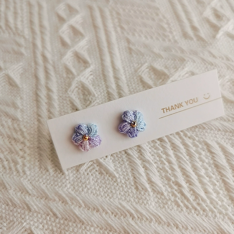 Puff flower 925 silver needle section dyed micro hook finished earrings