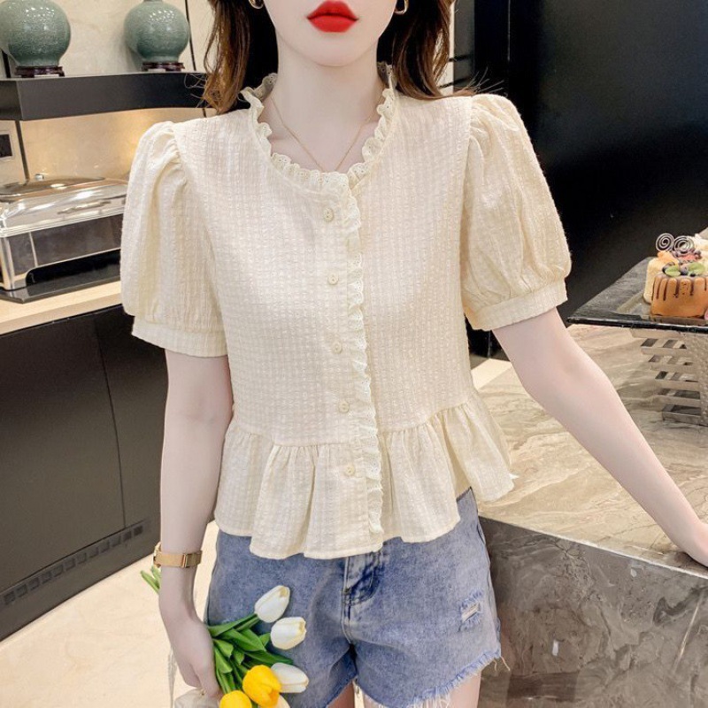 | nameOriginal | Puff Sleeve Chiffon Top Women's Summer 2024 New Short Sleeve Design Sense Niche Short Top French Doll Shirt |