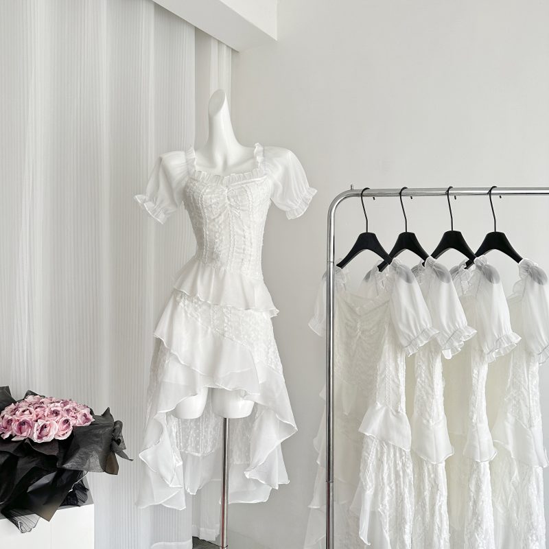 nameOriginal | Puff sleeve coffee break French irregular chiffon dress |
