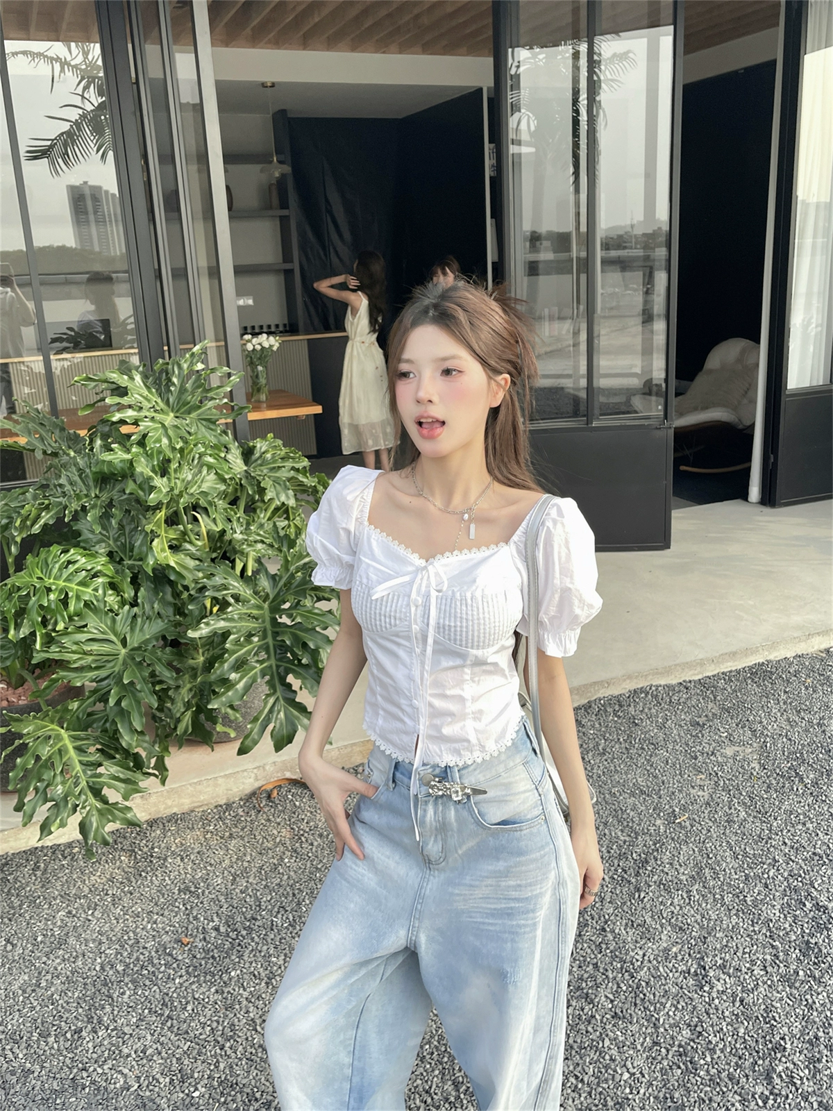 | nameOriginal | Puff sleeve slim fit square collar buttoned white shirt |