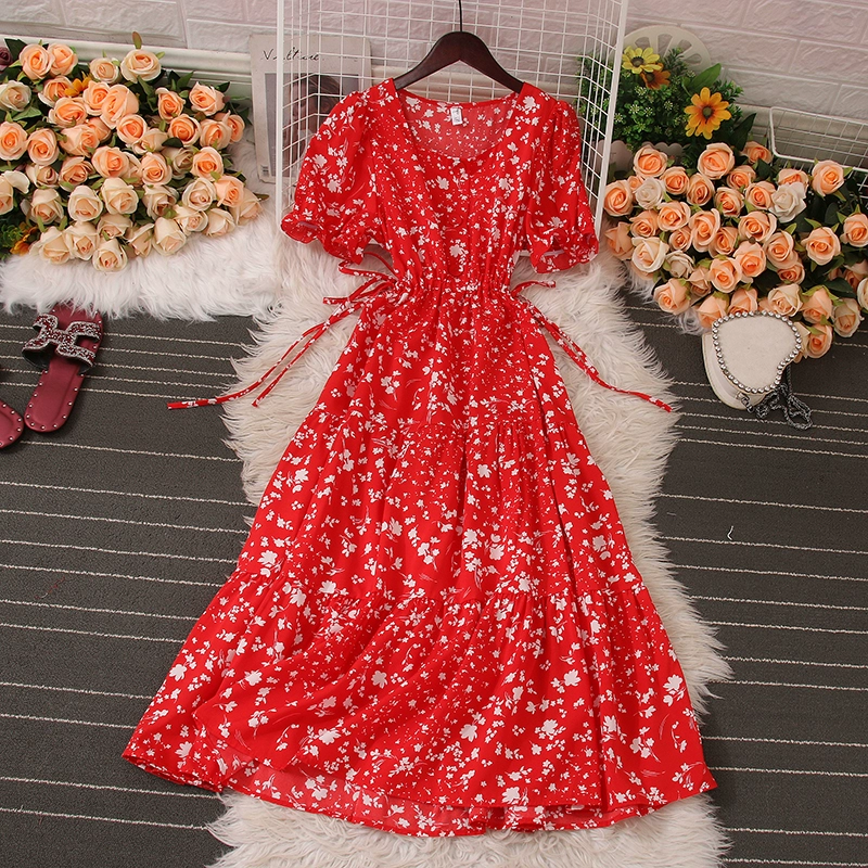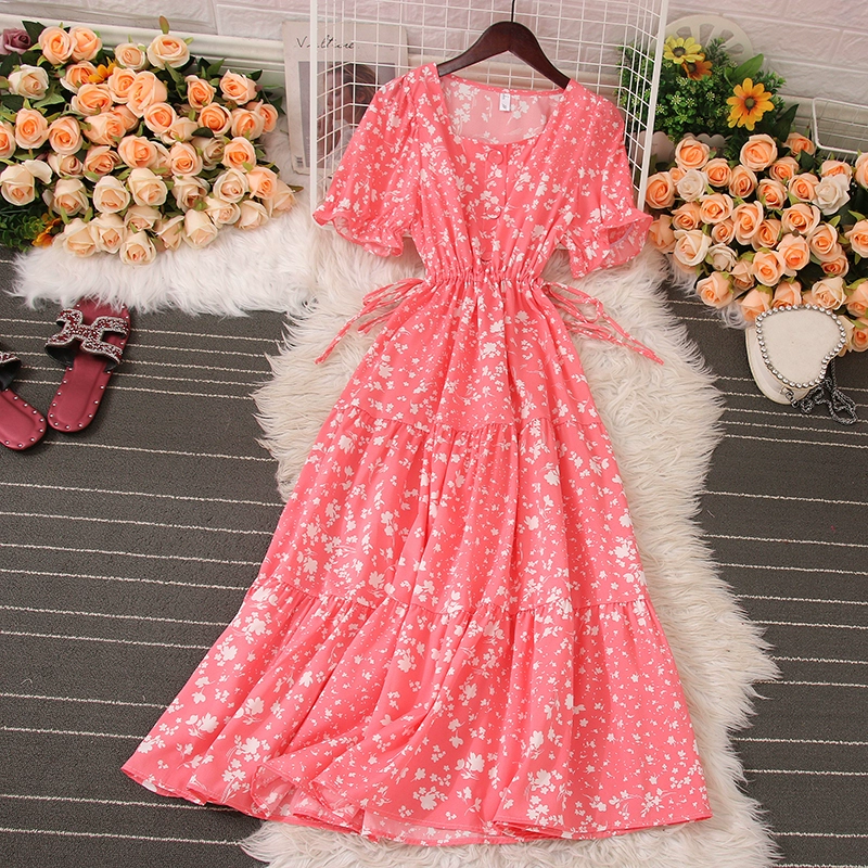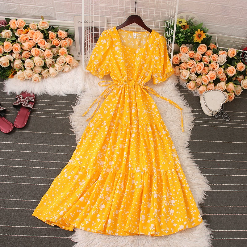 | nameOriginal | Puff sleeve square neck floral dress 2023 summer new style French retro sweet slim slim long skirt |