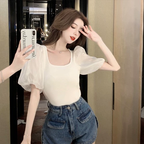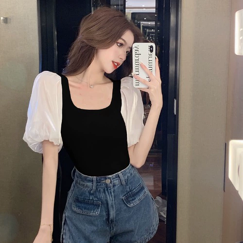| nameOriginal | Puff sleeve square neck patchwork sweet princess sweater |