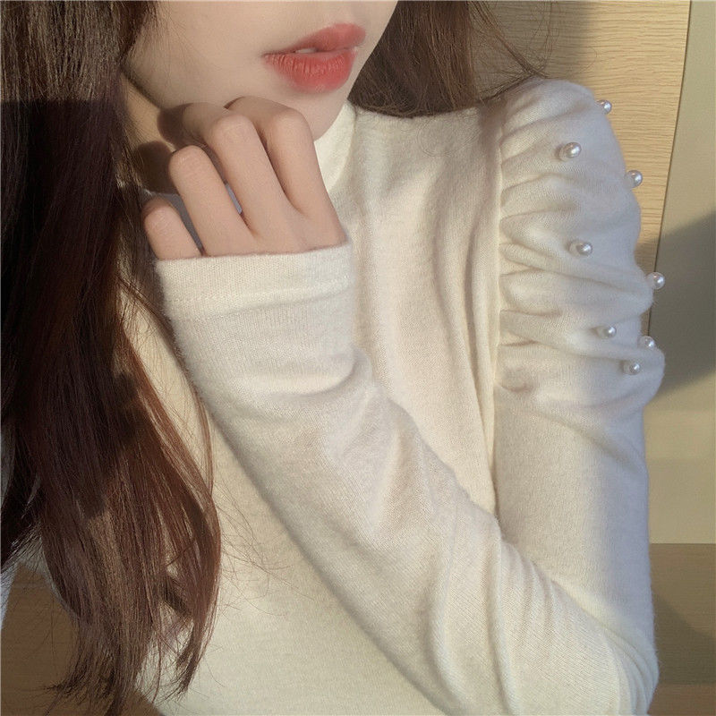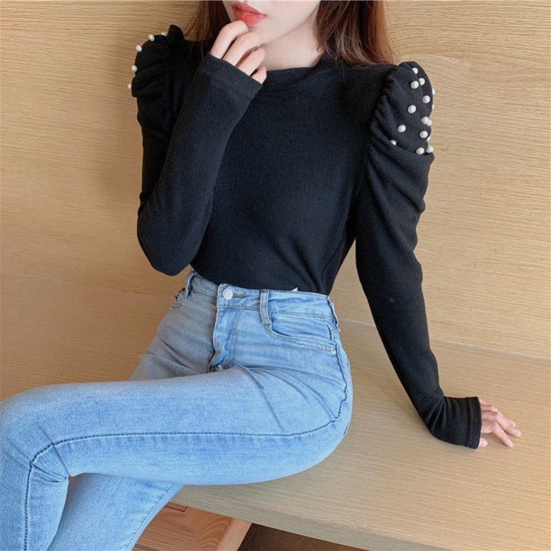 | nameOriginal | Puff sleeve top double-sided velvet round neck bottoming shirt women's autumn and winter New fleece-lined warm slim fit western style long sleeve |