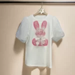 Puff sleeve top women's short sleeve summer 2024 new heavy industry rabbit handmade decoration trendy casual versatile and sweet