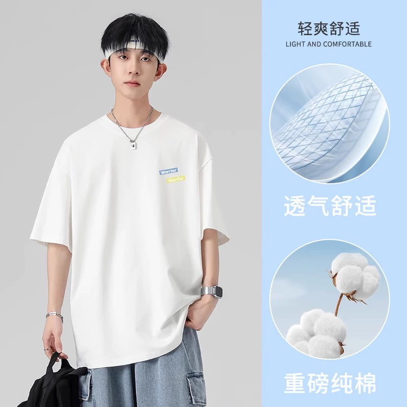 Pull back breathable right shoulder white men's short sleeve t-shirt