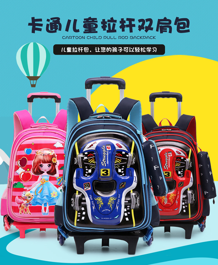 Pull Rod primary school student schoolbag waterproof 3D car detachable load-reducing children’s backpack can be customized logo