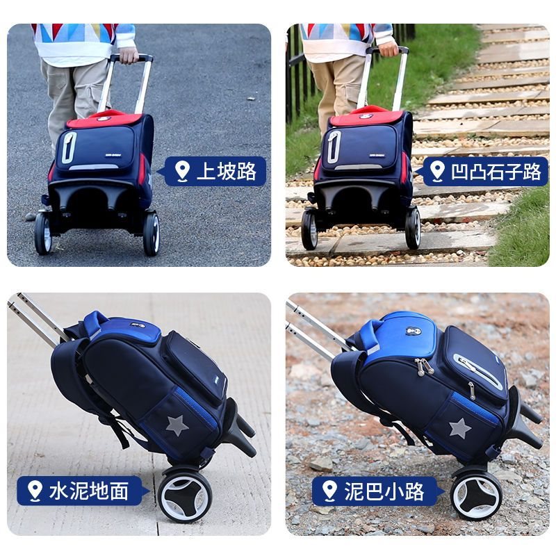 Pull-rod schoolbag can climb stairs primary school children 1-3-6 grade men and women waterproof push trailer with wheels