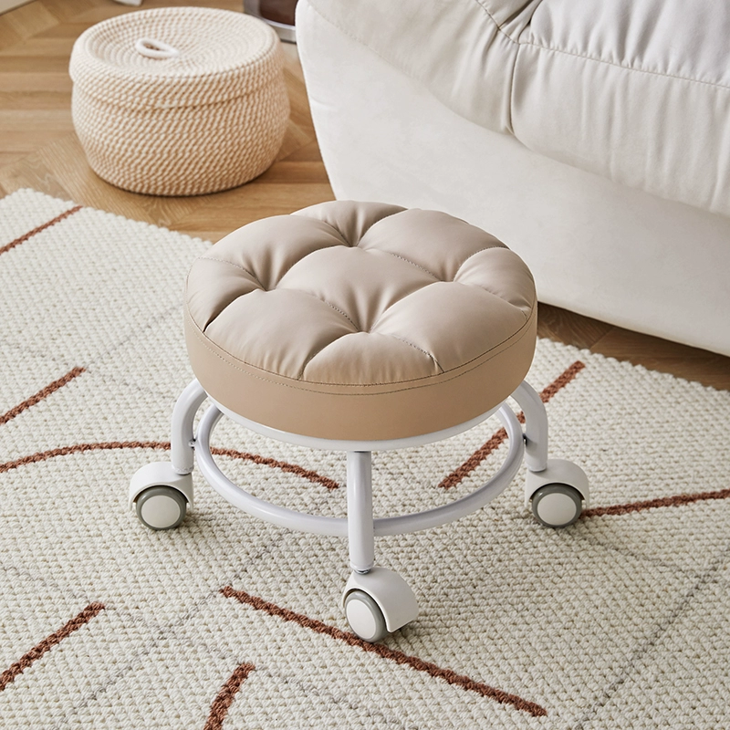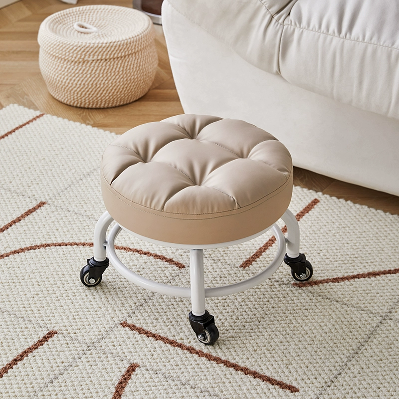 | nameOriginal | Pulley low stool with universal wheels, small stool for home use, small bench with beautiful seams, shoe changing stool, simple and creative toddler round stool. |