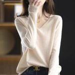 Pullover bottoming shirt 2023 autumn and winter New modal anti-Pilling simple sweater loose sweater women’s V-neck fashion