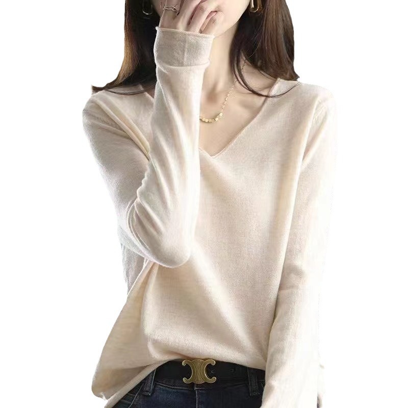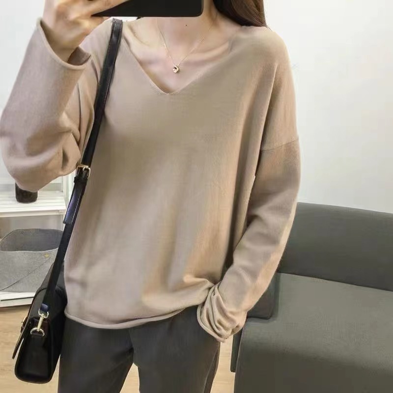 | nameOriginal | Pullover bottoming shirt 2023 autumn and winter New modal anti-Pilling simple sweater loose sweater women's V-neck fashion |