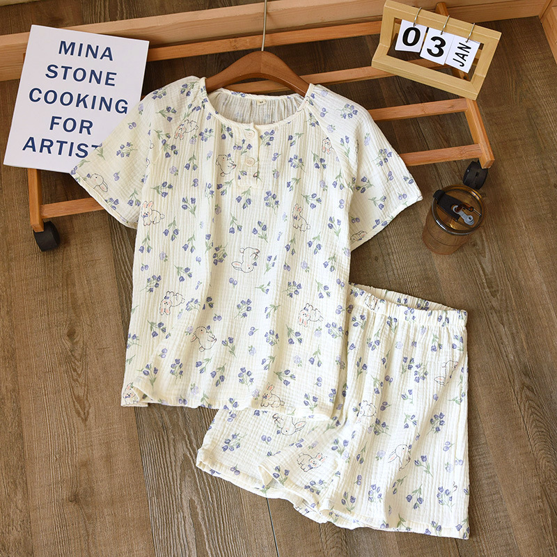 Pullover Pajamas Women’s Summer Gauze Pure Cotton Short Sleeve Shorts Set Women’s Cute Sweet Home Clothes Spring and Autumn New