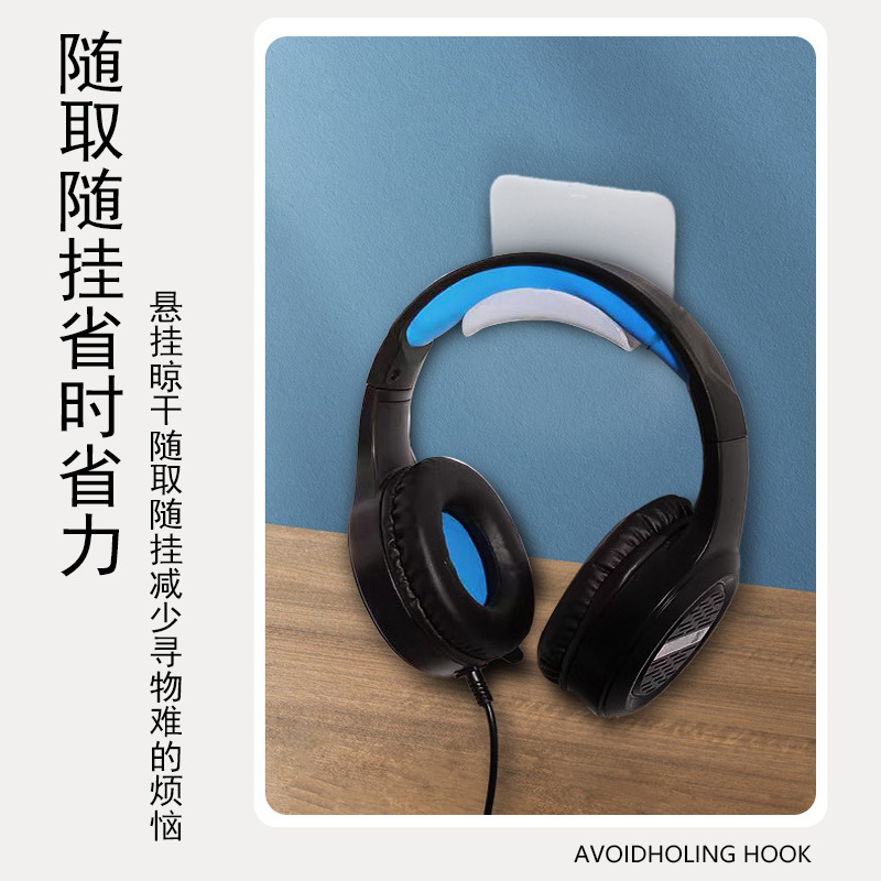 Punch-free computer headset bracket headset hook headset storage student dormitory paste wall hanging non-slip hook
