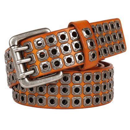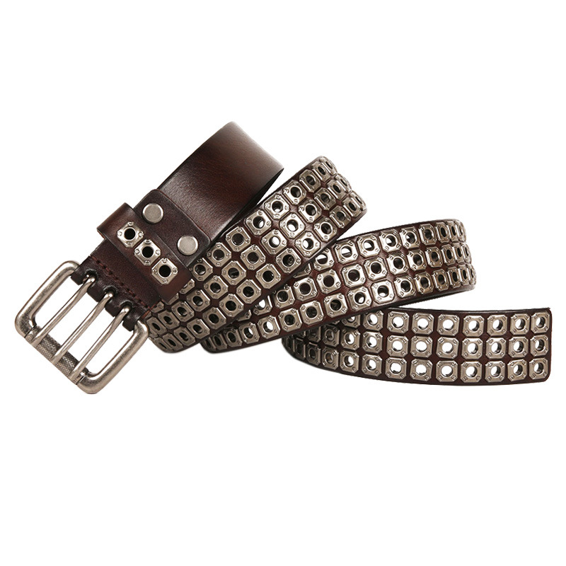 | nameOriginal | Punk gas eye hollow rivet men's first layer cowhide belt nightclub women's three pin buckle 150 lengthened belt cross-border batch |