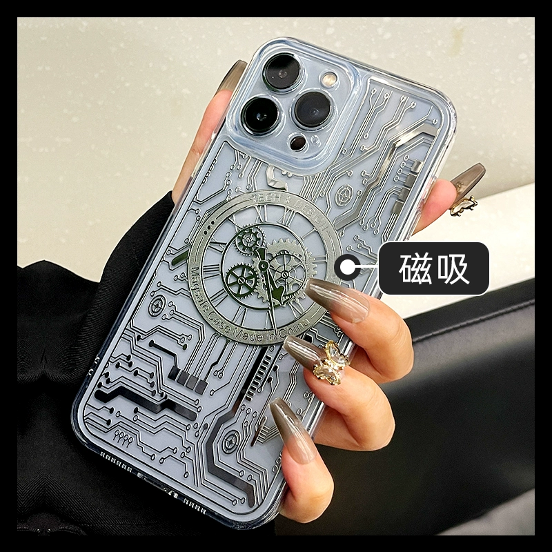 | nameOriginal | Punk style Apple 14 mobile phone case new 15pm magnetic magsafe super hot 16pro gold 13promax niche high-end sense iphone12 cyberpunk por gold plus men's p |