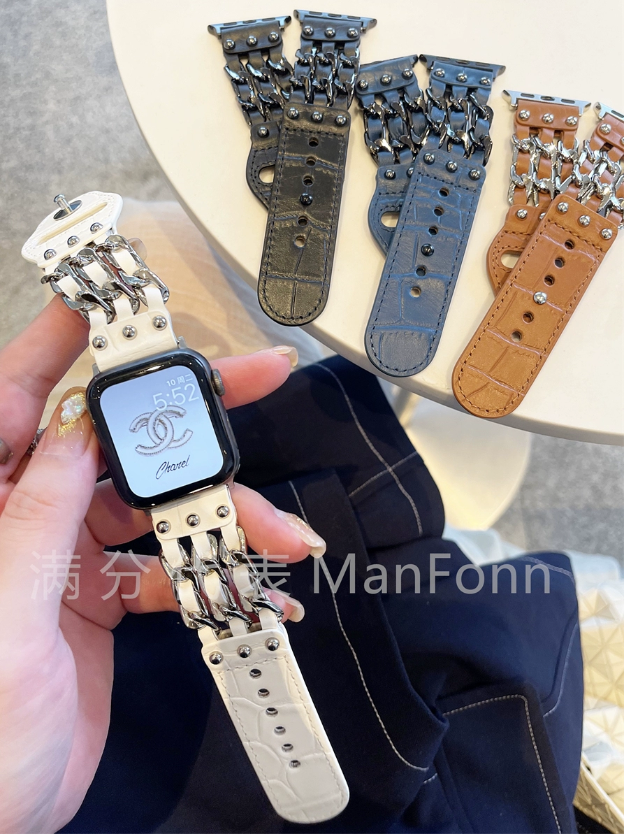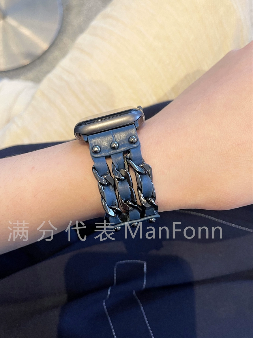 Punk style Apple watch iwatch876 generation SE suitable for applewatch9 leather metal chain strap