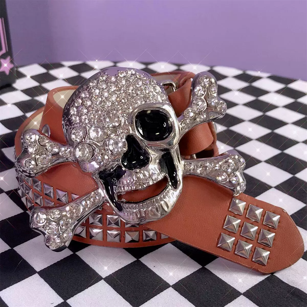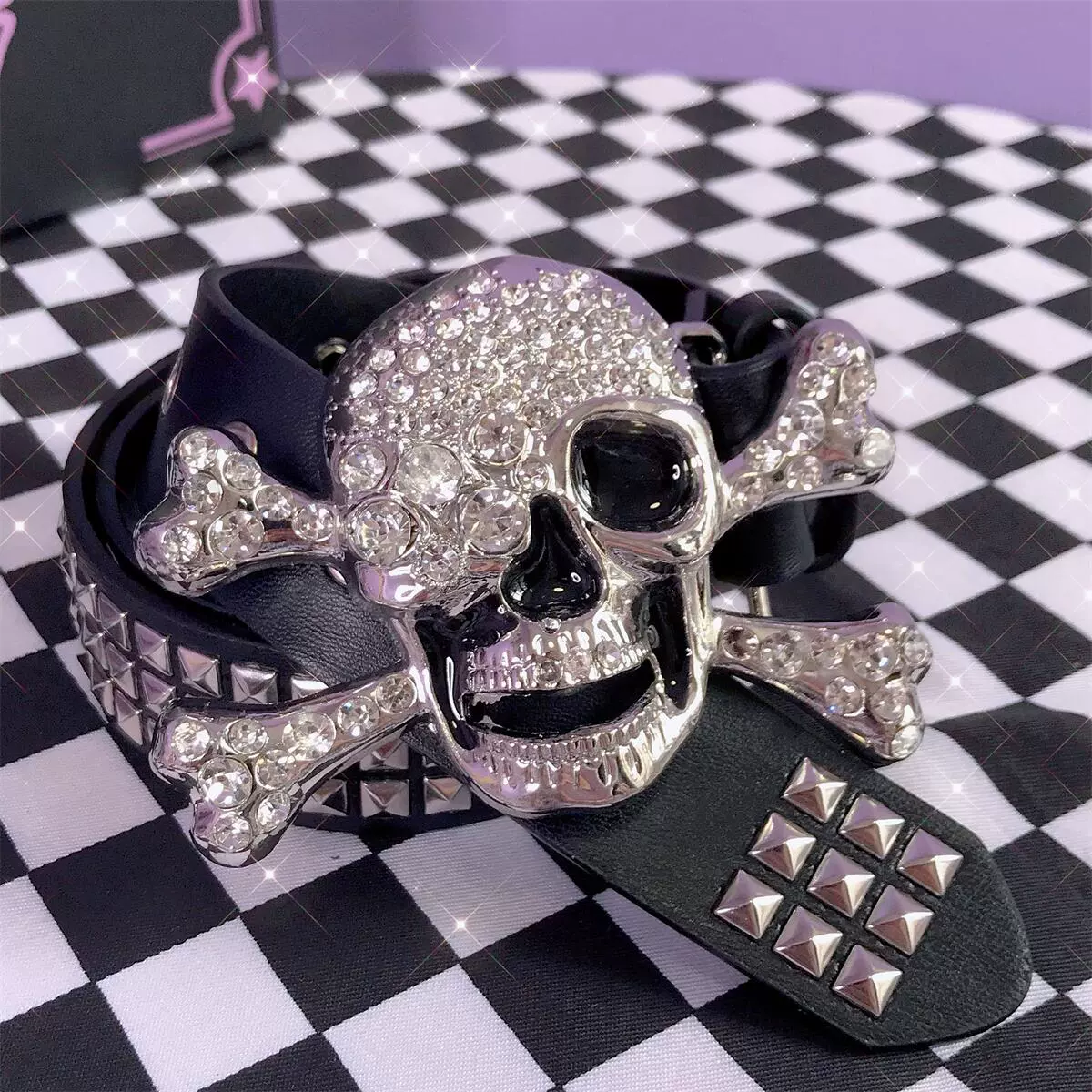 | nameOriginal | Punk Y2K subculture rhinestone skull belt |