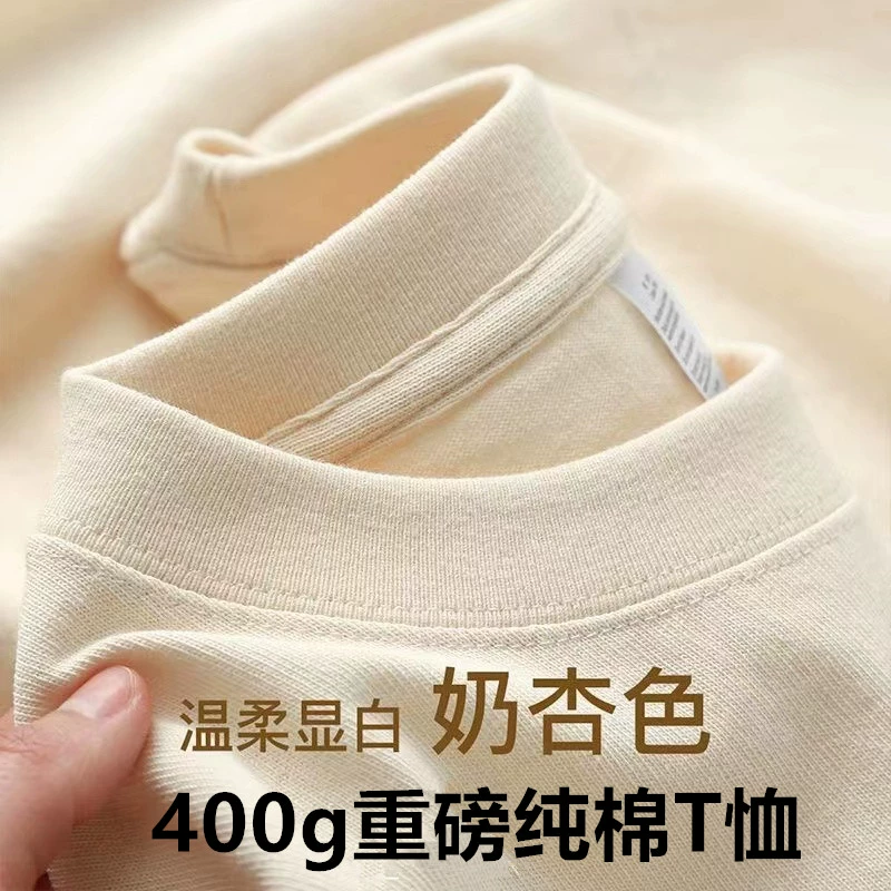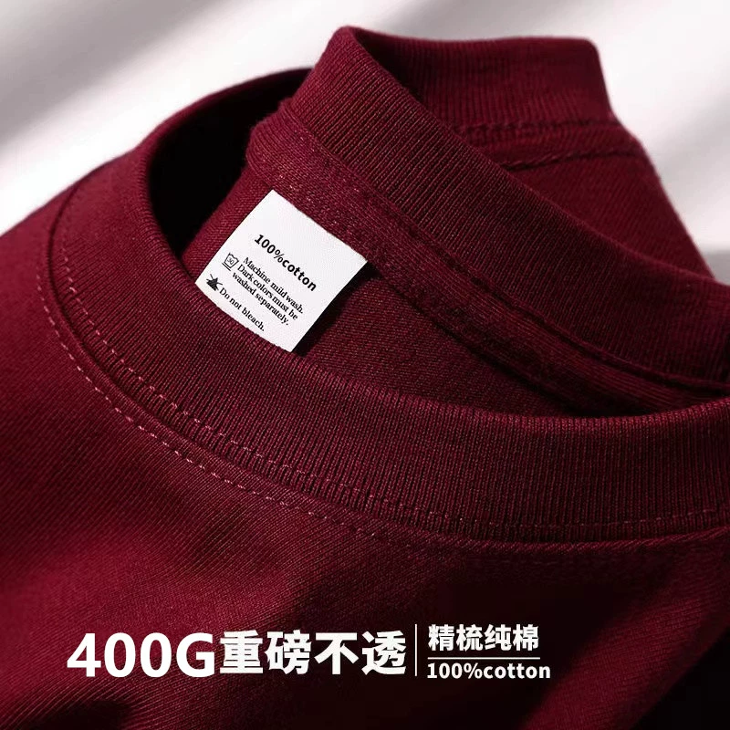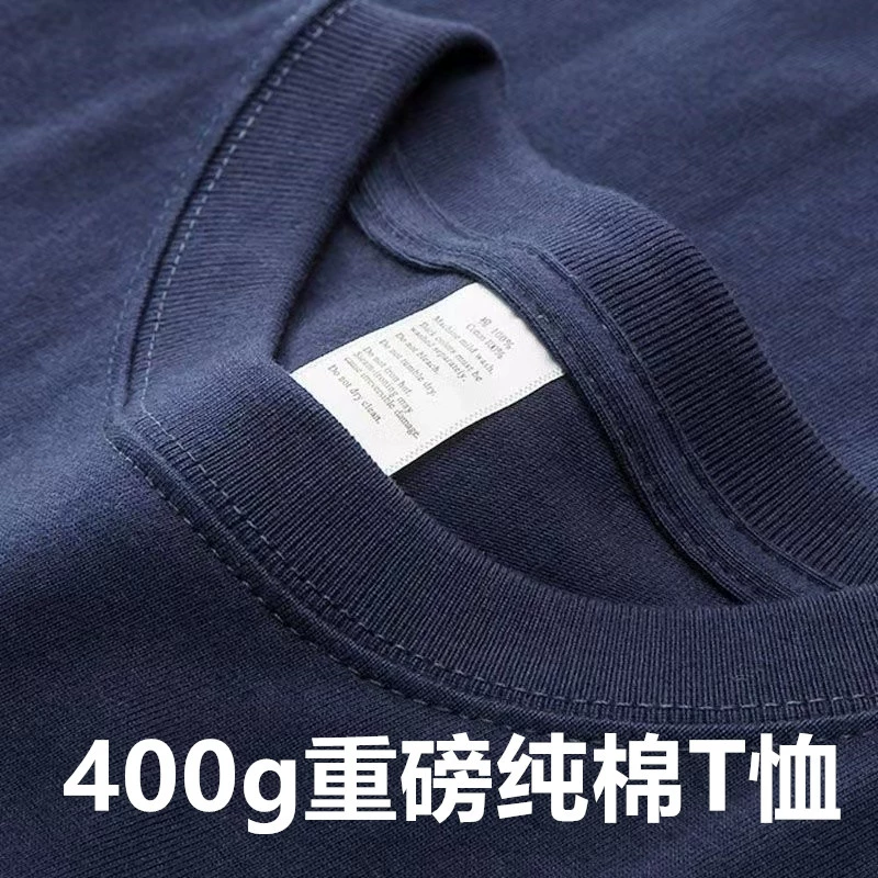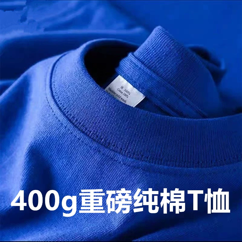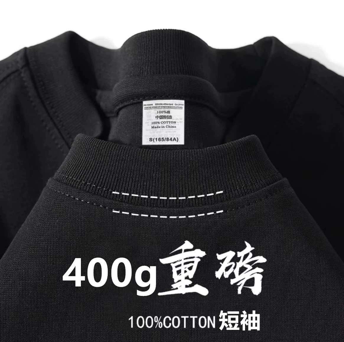 | nameOriginal | Pure black 400g heavyweight pure cotton short-sleeved thick opaque T-shirt loose round neck half-sleeved men's and women's bottoming shirt top |