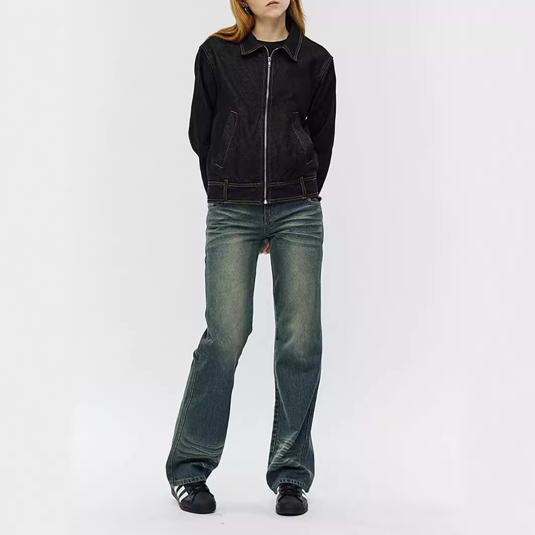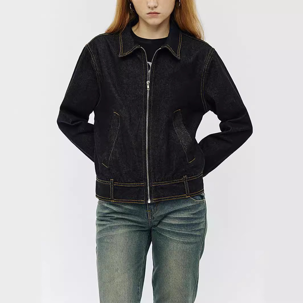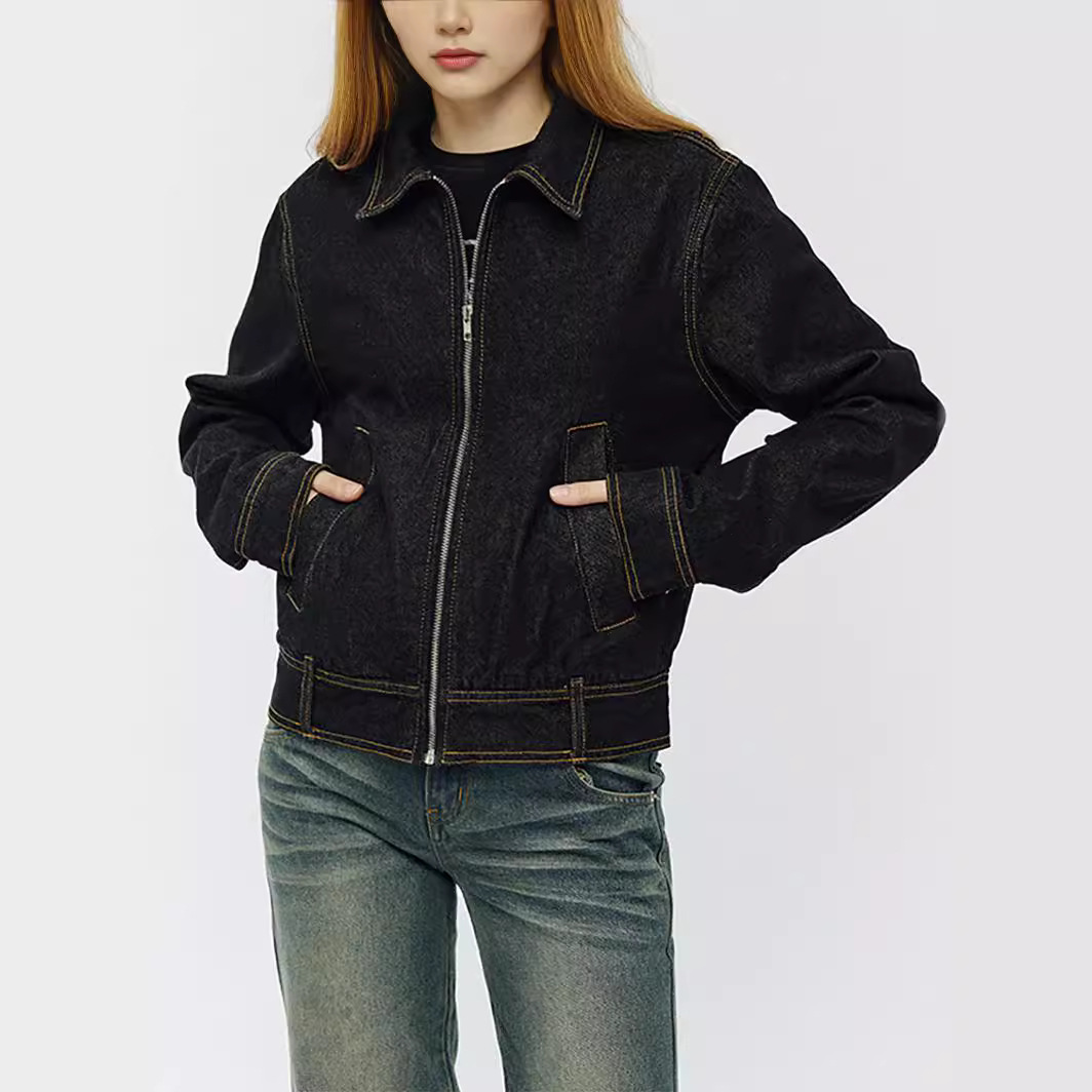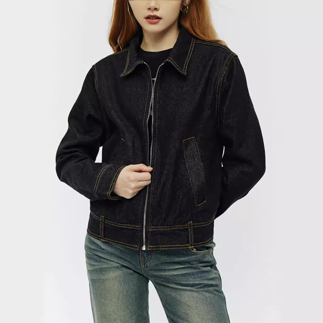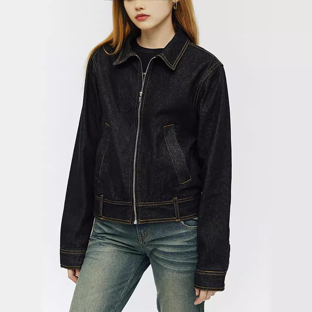 | nameOriginal | Pure Black Denim Jacket Coat Women's Short Retro Slim-fit All-match Lapel Jacket Top |