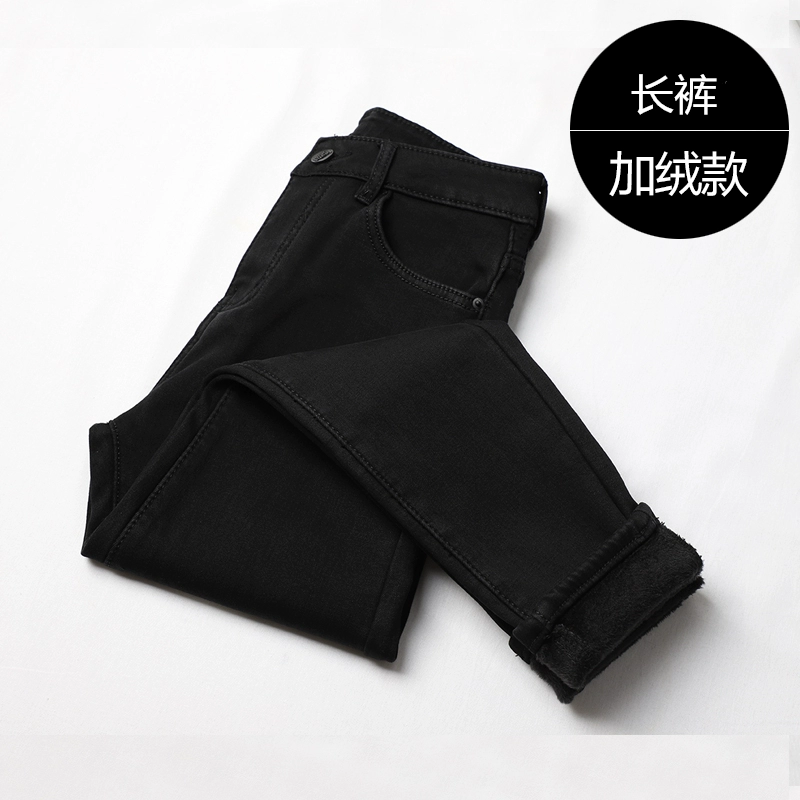 | nameOriginal | Pure black high waist autumn and winter fleece skinny jeans |