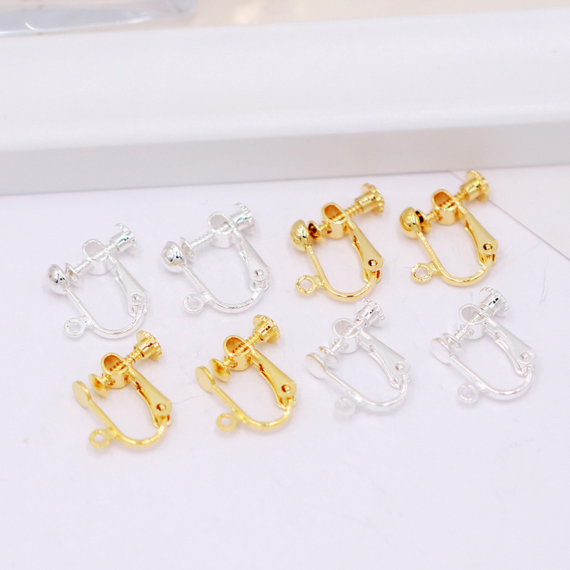 Pure copper 18K gold-coated color retaining ear pin ear clip converter U-shaped adjustable screw ear clip DIY earrings accessories