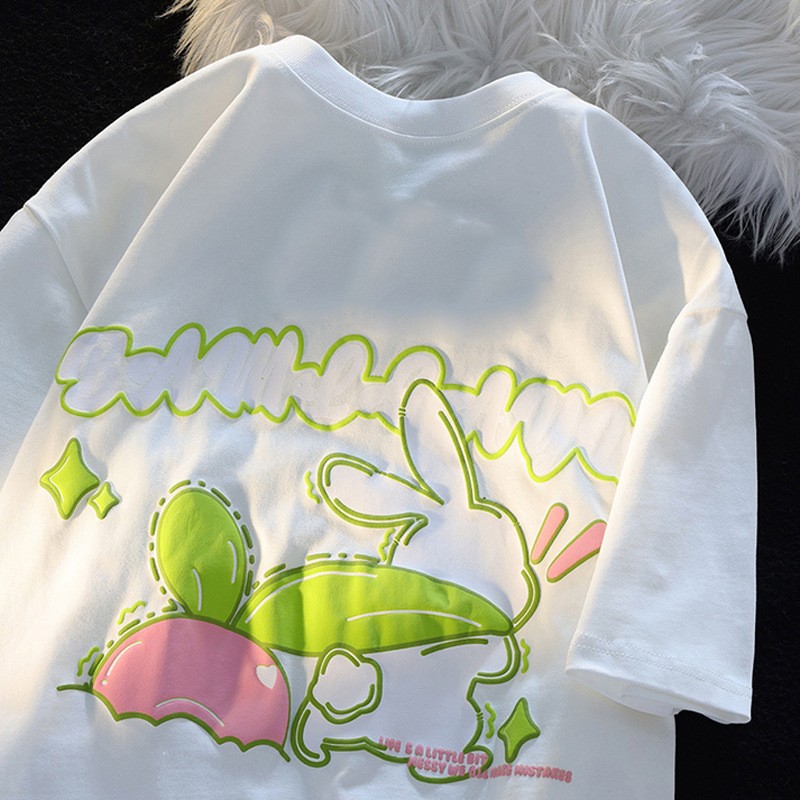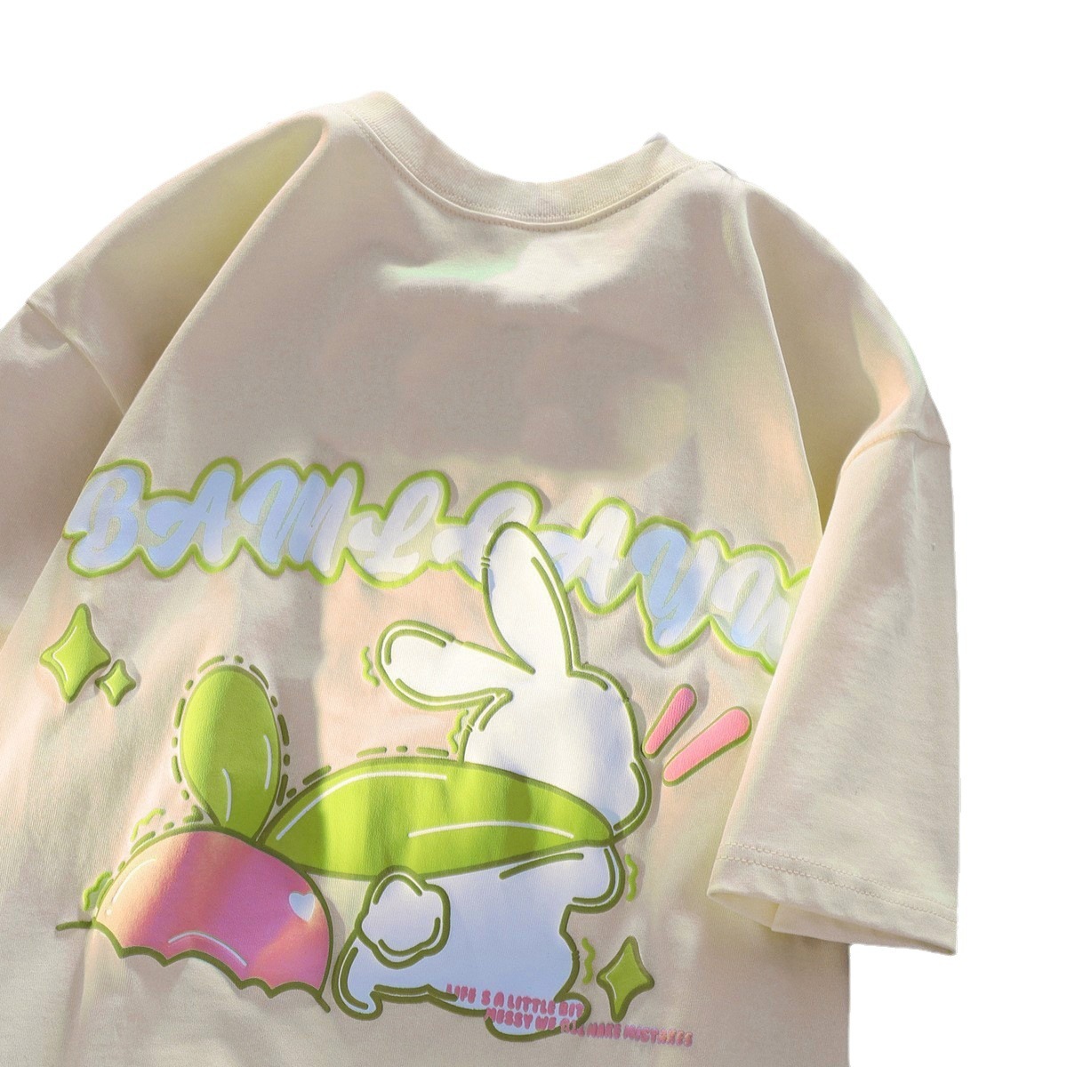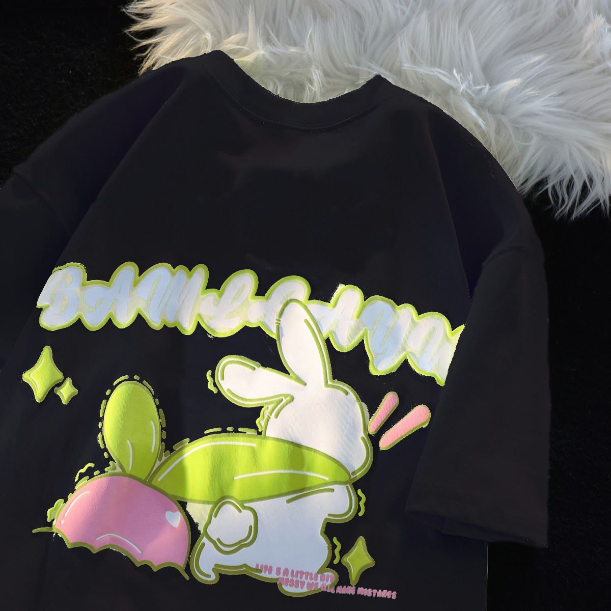 | nameOriginal | Pure Cotton 2024 Summer Rabbit Student White Ink T-Shirt Women's Vigorous Fun-fit Loose Shoulder Short-sleeved T-shirt Women |
