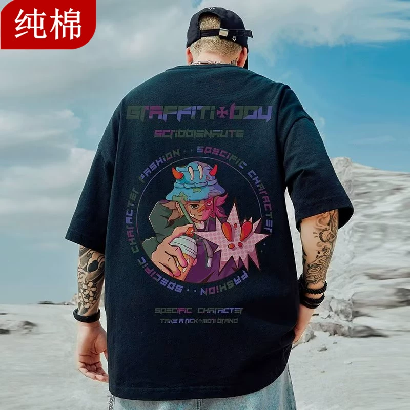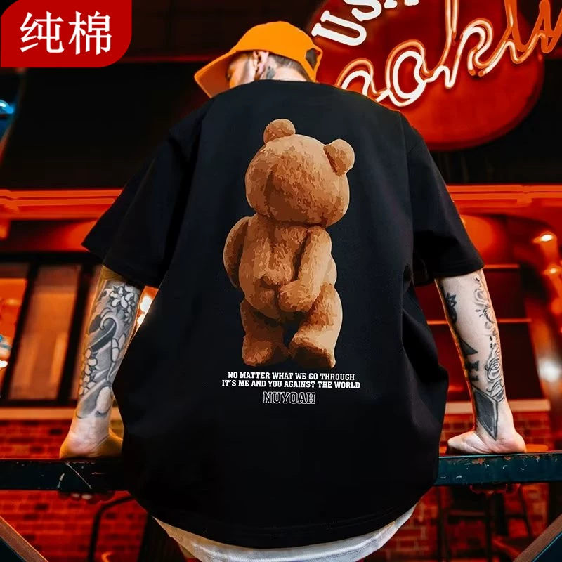 | nameOriginal | Pure cotton American retro spoof bear short-sleeved T-shirt men's ins trend loose plus fat plus size couple wear half-sleeved summer |
