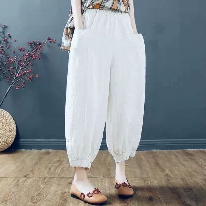 Pure cotton and linen retro casual high waist slimming nine-point literary style