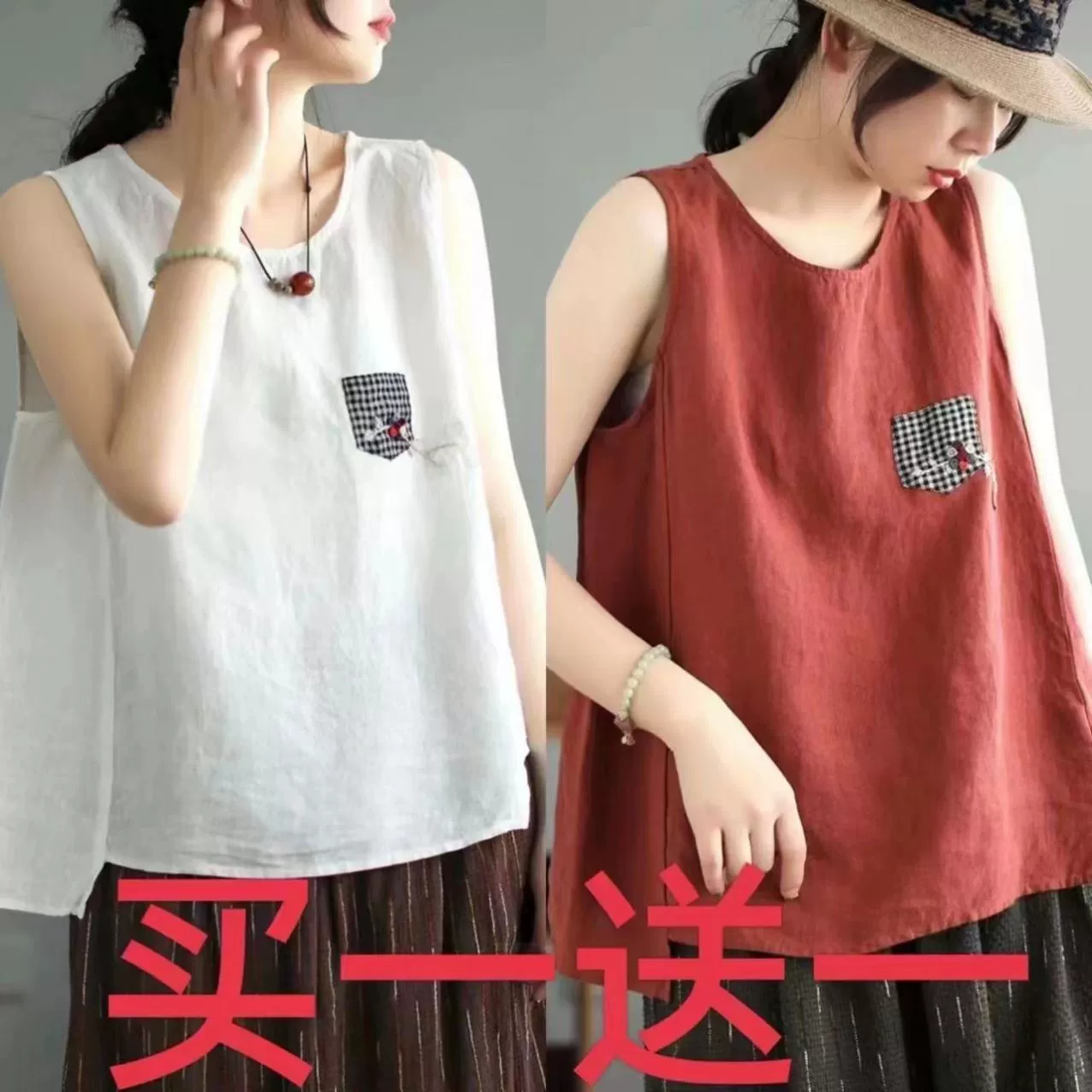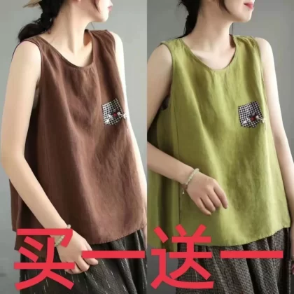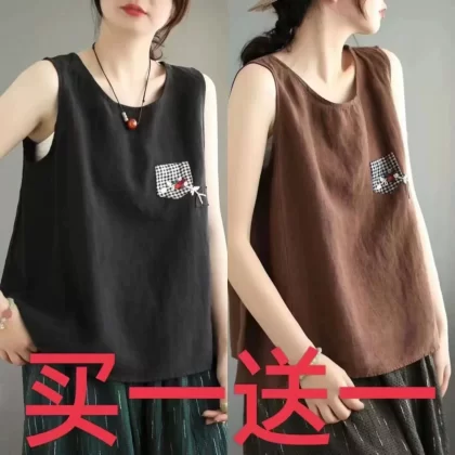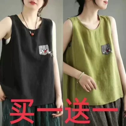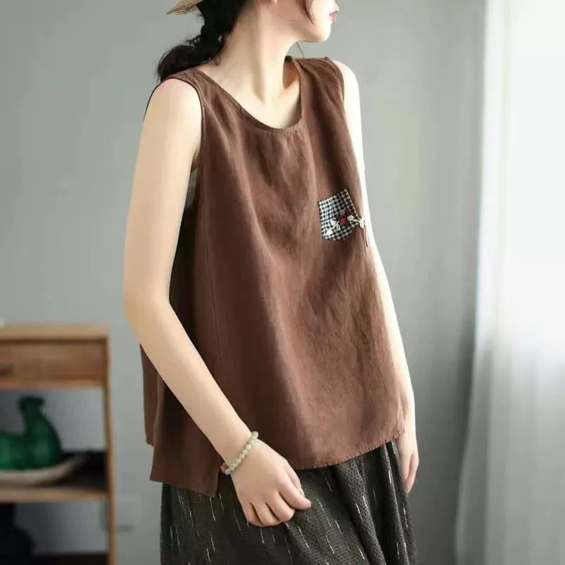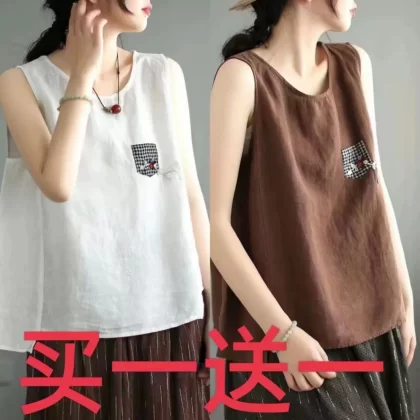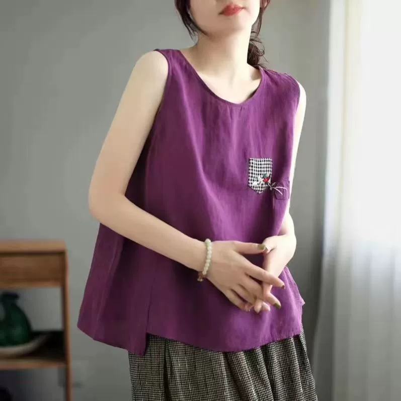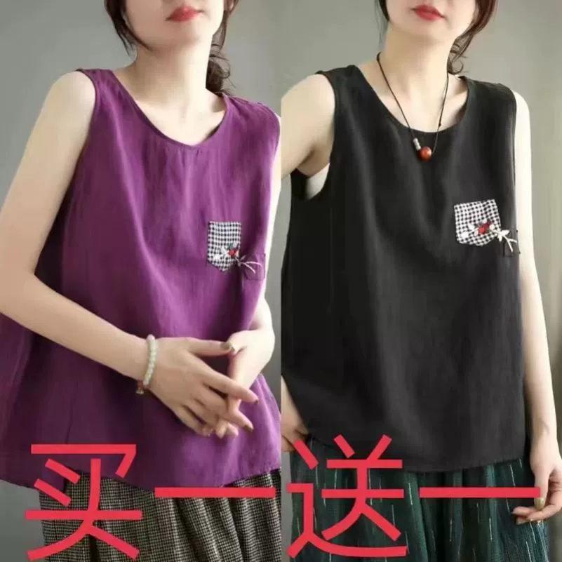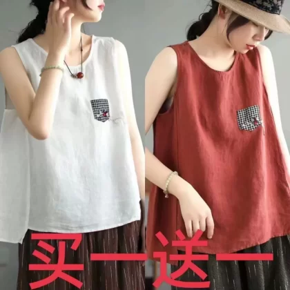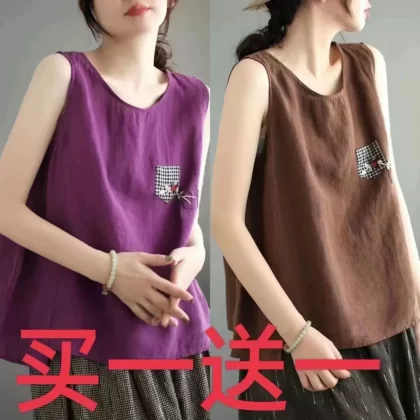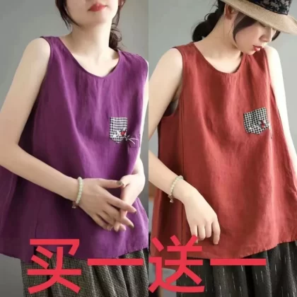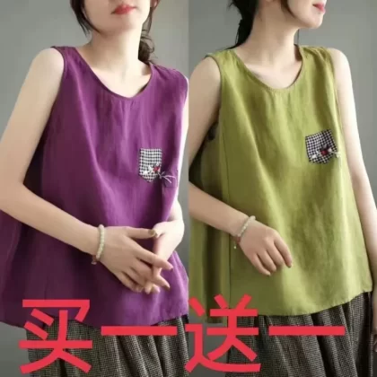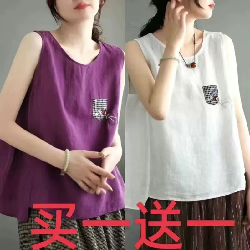 | nameOriginal | Pure cotton and linen sleeveless t-shirt large size loose embroidered vest |